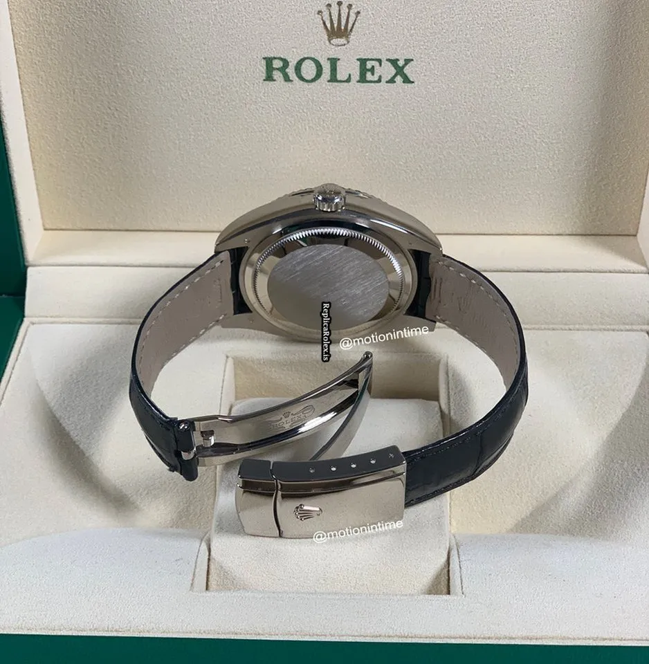 Tags: 10m atm, 14.1mm, 326139, 40 jewels, 42mm case diameter, 72h power reserve, automatic movement, black bracelet color, caliber 3135, crocodile skin bracelet material, fold clasp, mens watches, roman numerals, sapphire crystal, unisex watches, white dial, white gold bezel material, white gold case material, white gold clasp material
