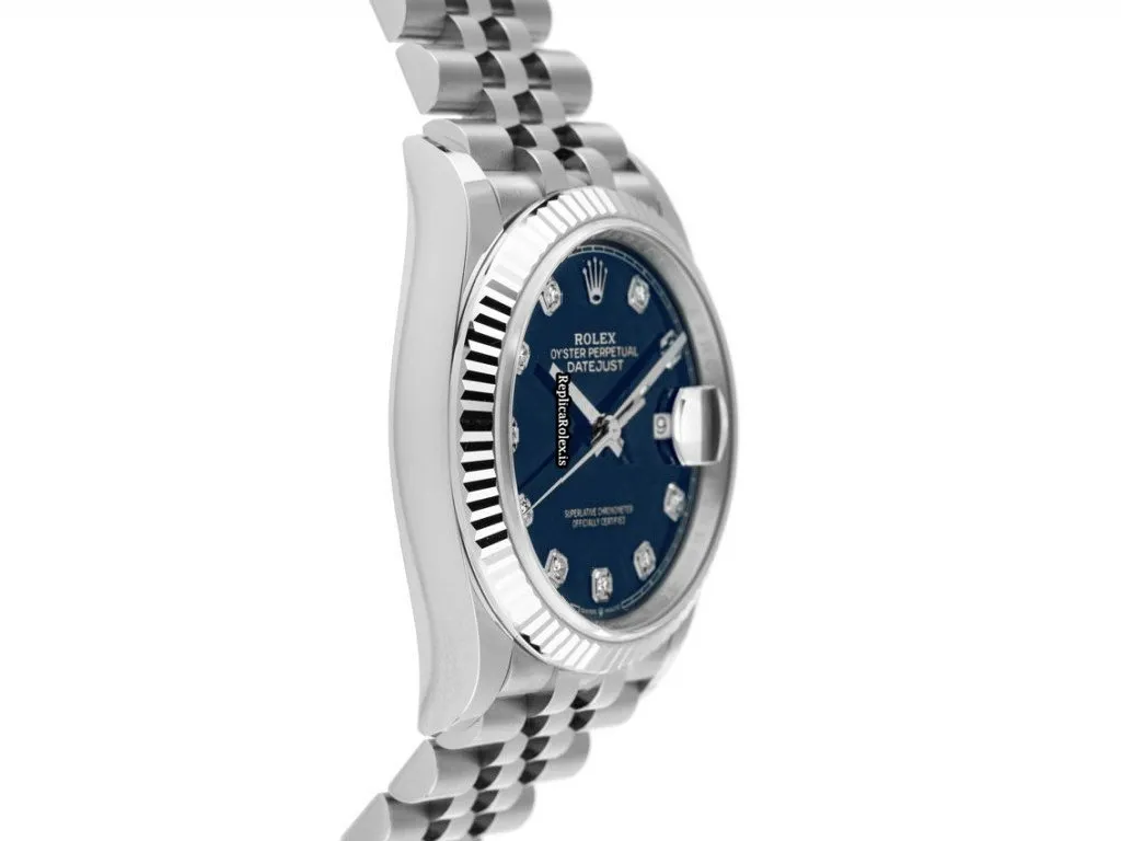 Tags: 10m atm, 11.6mm, 126234, 36mm case diameter, 70h power reserve, automatic movement, blue dial, caliber 3235, fold clasp, gold/steel bracelet color, mens watches, sapphire crystal, steel bracelet material, steel case material, unisex watches, white gold bezel material