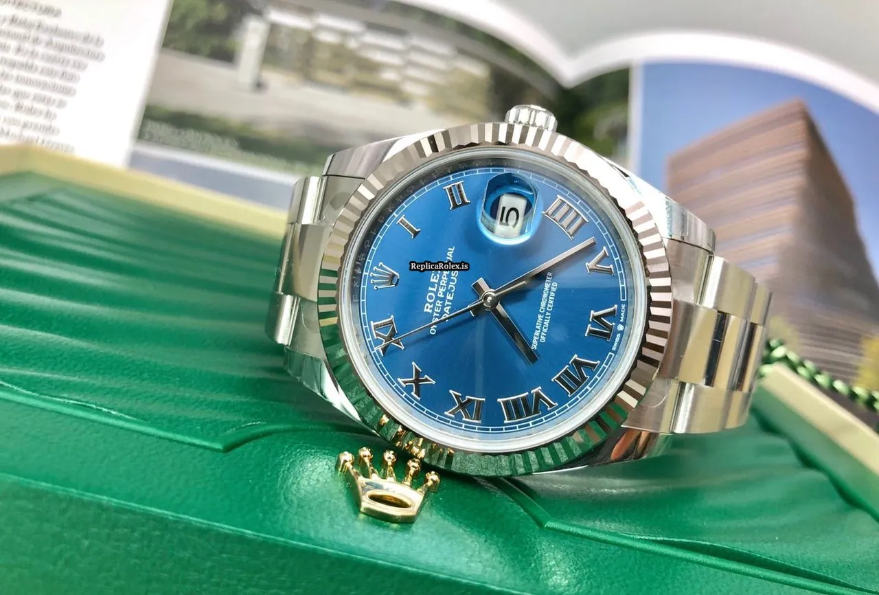 Tags: 10m atm, 126334, 31 jewels, 41mm case diameter, 70h power reserve, automatic movement, blue dial, caliber 3135, caliber 3235, fold clasp, mens watches, roman numerals, sapphire crystal, steel bracelet color, steel bracelet material, steel clasp material, unisex watches, white gold bezel material, white gold case material