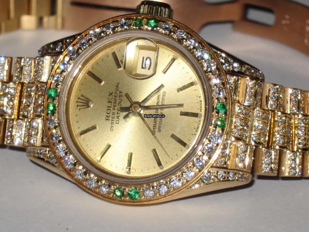 Fine Replica Rolex Datejust Self Winding Automatic 26mm Yellow Gold Case Womens Watch