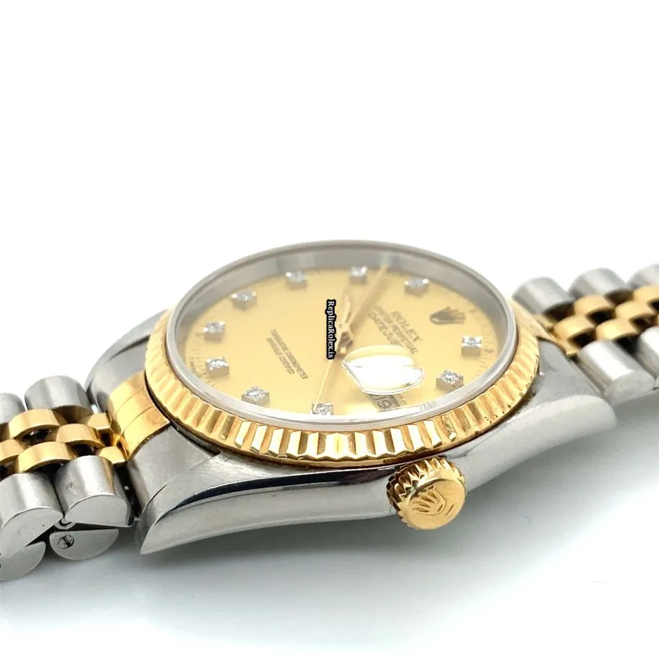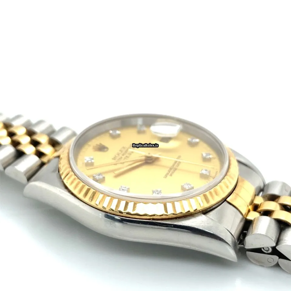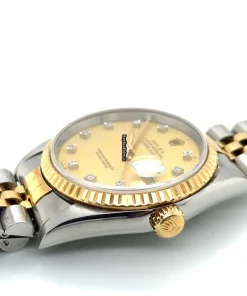 Tags: 11.9mm, 16233, 17mm buckle width, 20mm lug width, 36mm case diameter, automatic movement, caliber 3135, fold clasp, gold dial, gold/steel bracelet color, gold/steel bracelet material, gold/steel case material, mens watches, no numerals, sapphire crystal, steel clasp material, unisex watches, yellow gold bezel material