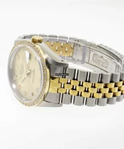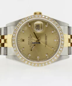 Tags: 10m atm, 16233, 36mm case diameter, automatic movement, champagne dial, fold clasp, gold bracelet color, gold/steel bracelet material, hidden clasp, mens watches, no numerals, sapphire crystal, steel case material, steel clasp material, unisex watches, yellow gold bezel material