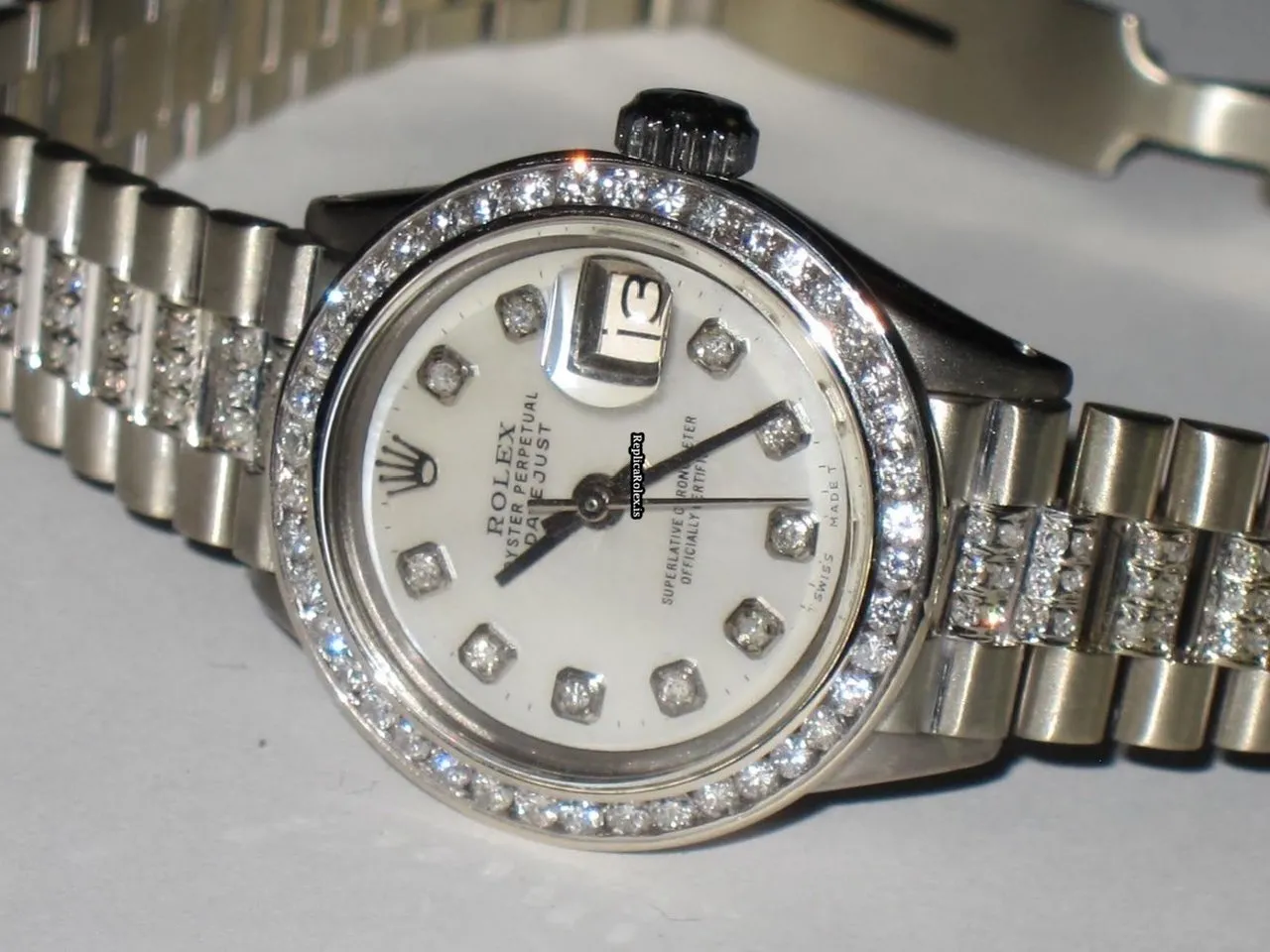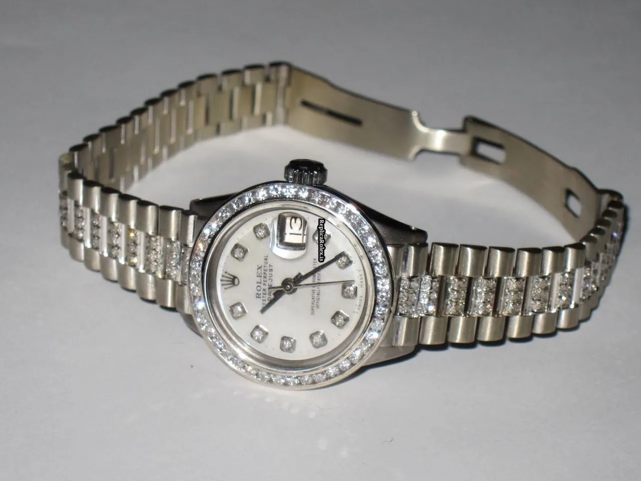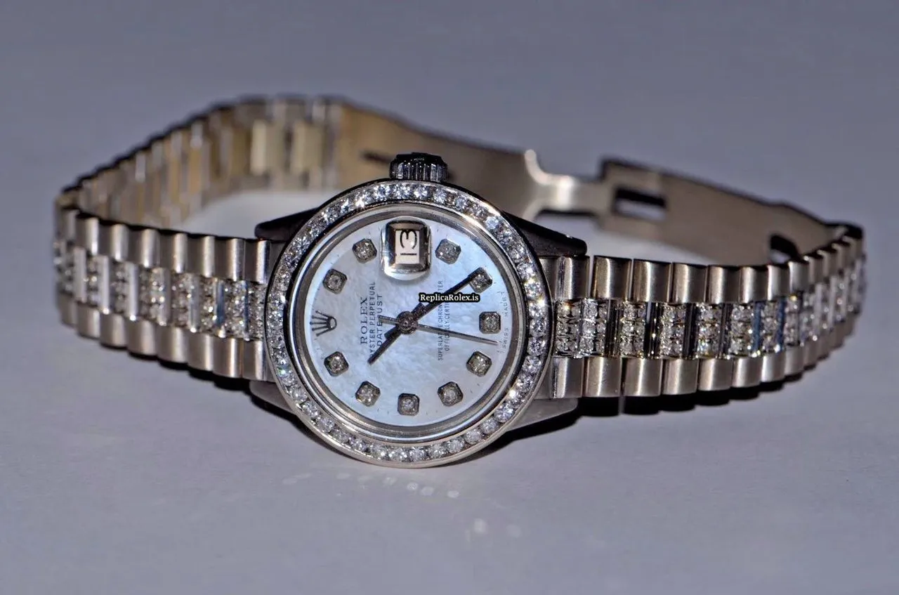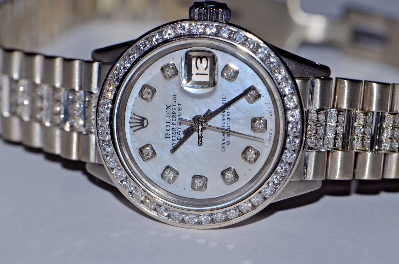 Good Replica Rolex Datejust Self Winding Automatic 26mm White Gold Case Womens Watch