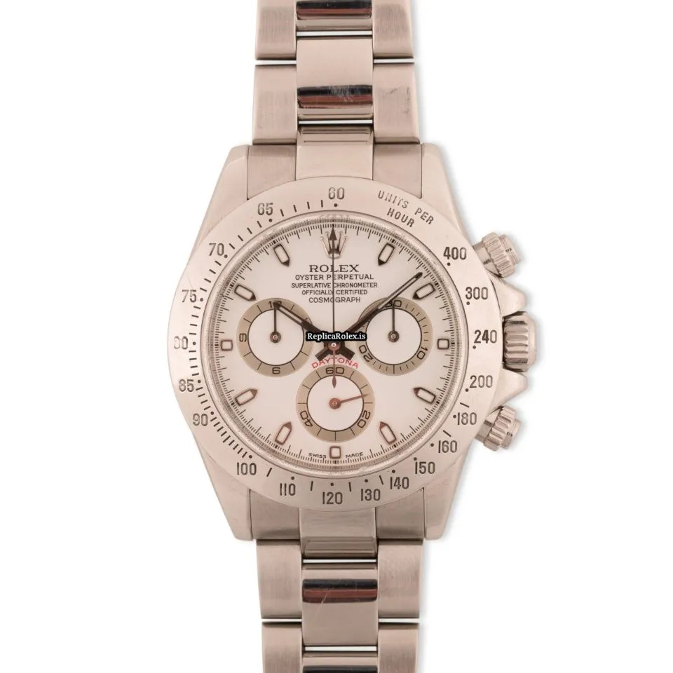Tags: 10m atm, 116520, 40mm case diameter, 44 jewels, 72h power reserve, automatic movement, caliber 4130, fold clasp, mens watches, no numerals, sapphire crystal, steel bezel material, steel bracelet color, steel bracelet material, steel case material, steel clasp material, unisex watches, white dial