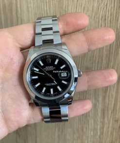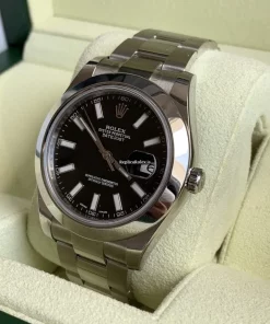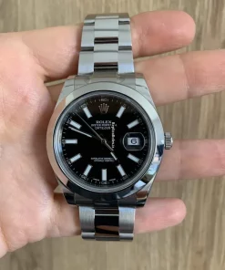 Tags: 10m atm, 116300, 12mm, 31 jewels, 41mm case diameter, 48h power reserve, automatic movement, black dial, caliber 3135, caliber 3136, fold clasp, mens watches, sapphire crystal, steel bezel material, steel bracelet color, steel bracelet material, steel case material, steel clasp material, unisex watches