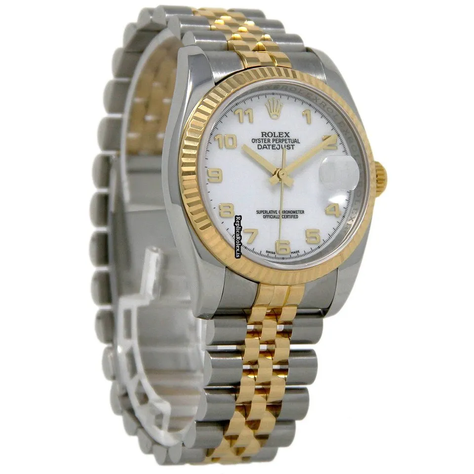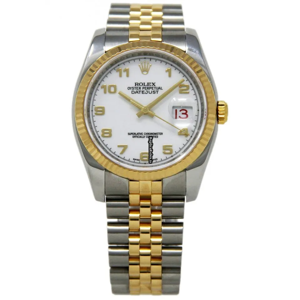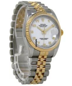 Tags: 10m atm, 116233, 195mm bracelet length, 36mm case diameter, automatic movement, gold/steel bracelet material, mens watches, sapphire crystal, steel case material, unisex watches, white dial, yellow gold bezel material