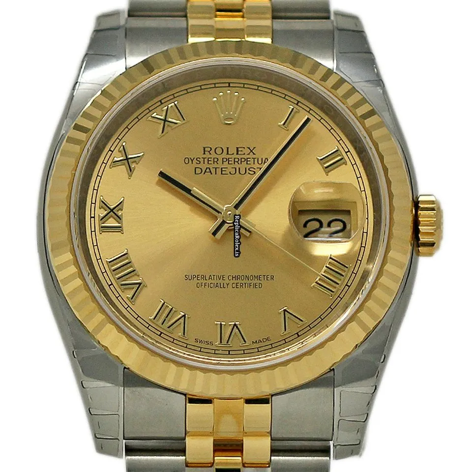 Tags: 10m atm, 116233, 36mm case diameter, automatic movement, caliber 3135, champagne dial, fold clasp, gold/steel bracelet material, hidden clasp, mens watches, sapphire crystal, steel case material, unisex watches, yellow gold bezel material
