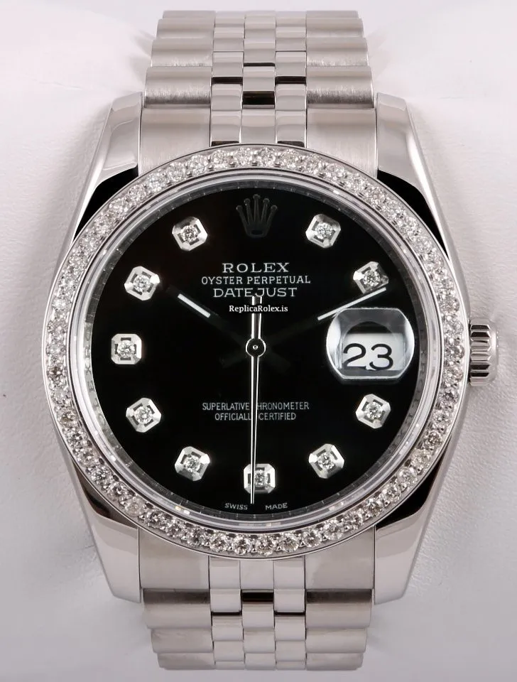 Tags: 116234, 20mm lug width, 23 jewels, 36mm case diameter, automatic movement, black dial, mens watches, sapphire crystal, silver bracelet color, steel bracelet material, steel case material, unisex watches
