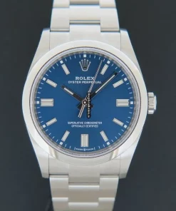 Tags: 126000, 12mm, 36mm case diameter, automatic movement, blue dial, fold clasp, mens watches, sapphire crystal, steel bracelet color, steel bracelet material, steel case material, steel clasp material, unisex watches