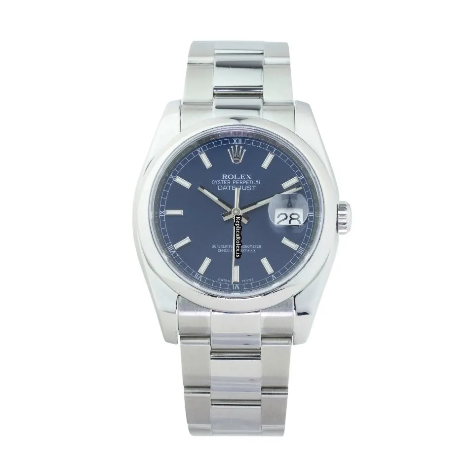 Tags: 10m atm, 116200, 31 jewels, 36mm case diameter, 48h power reserve, automatic movement, blue dial, caliber 3135, fold clasp, mens watches, sapphire crystal, steel bezel material, steel bracelet color, steel bracelet material, steel case material, steel clasp material, unisex watches