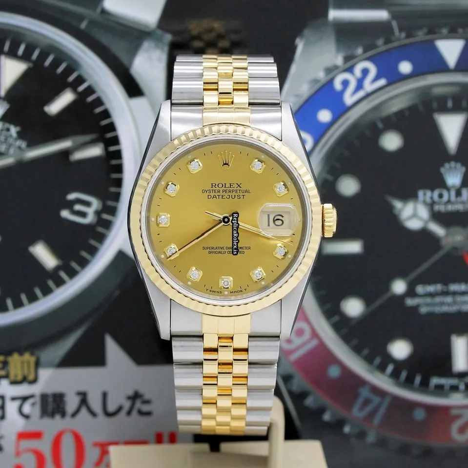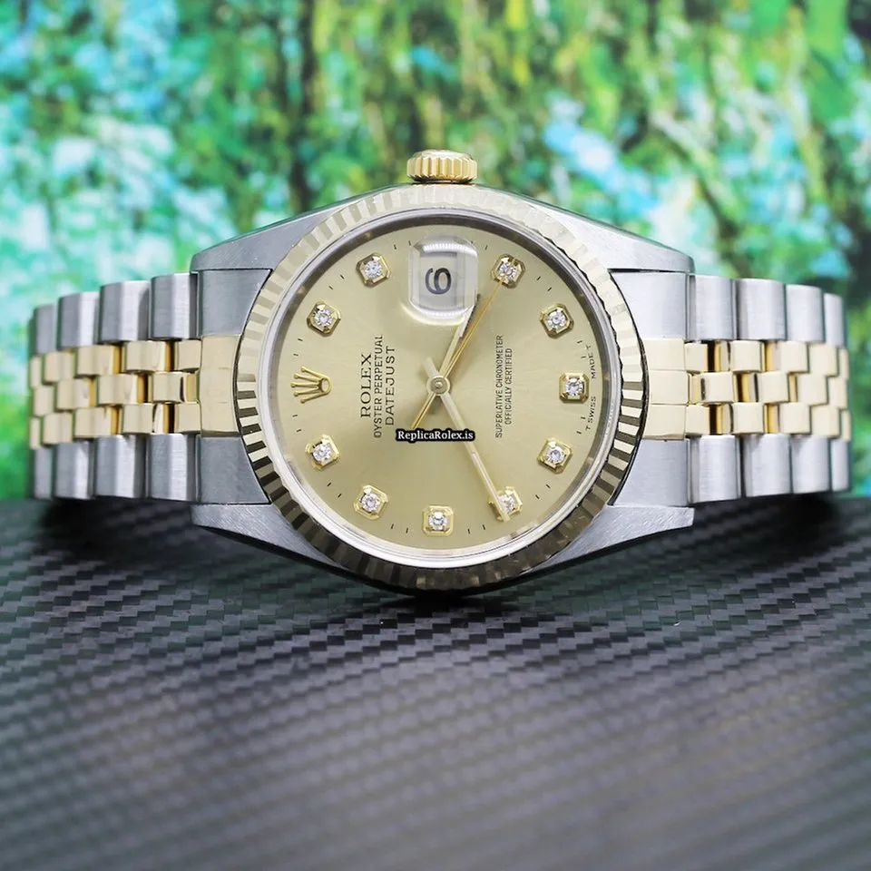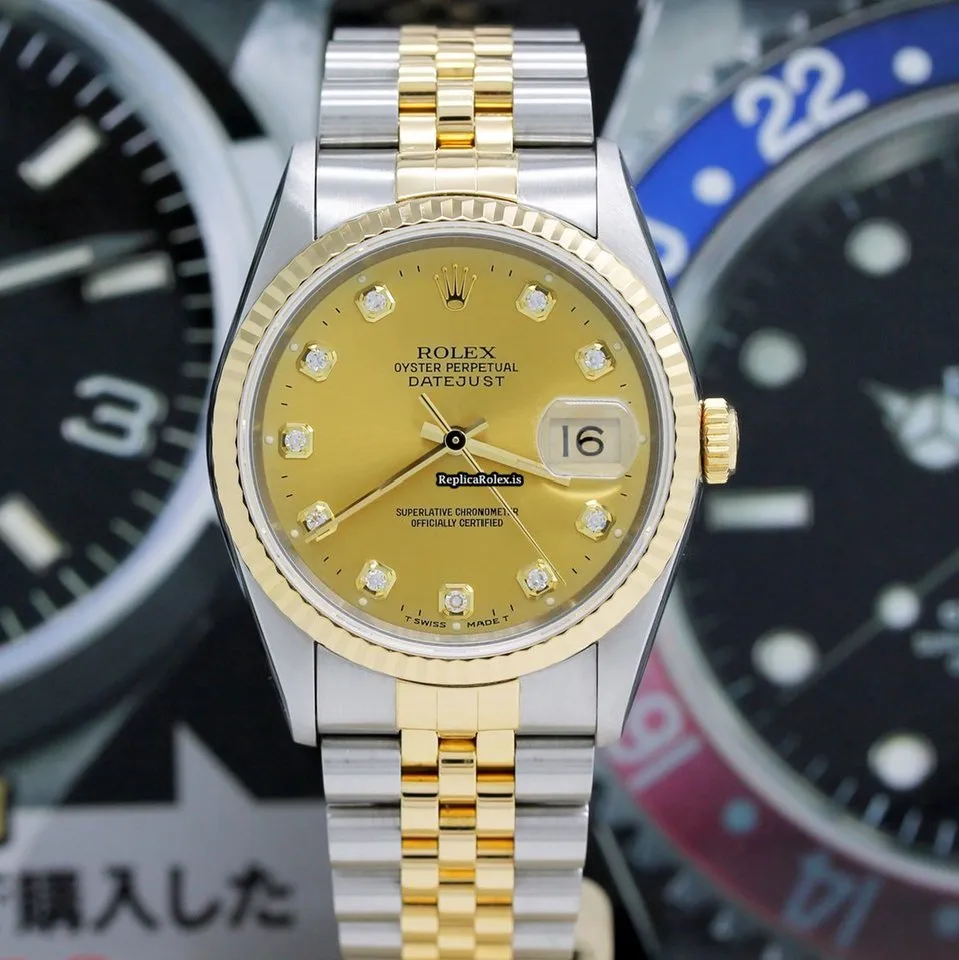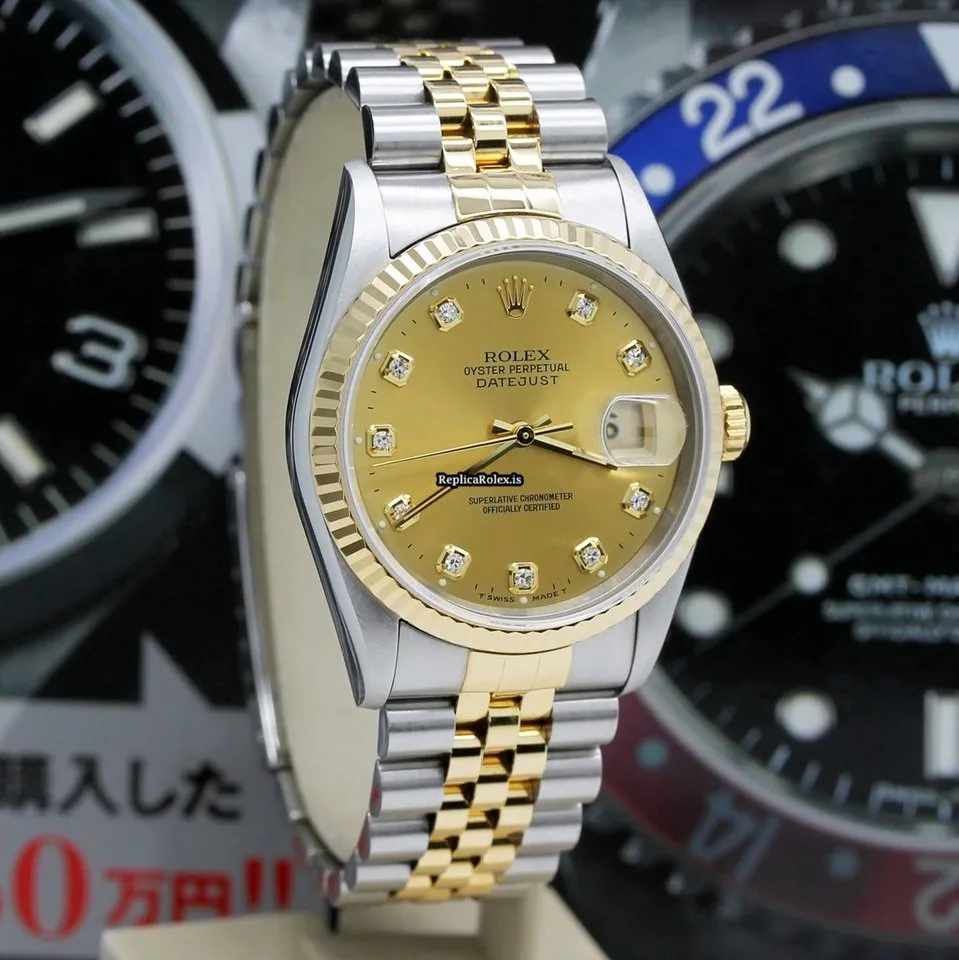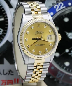 Tags: 10m atm, 12mm, 16233, 31 jewels, 36mm case diameter, 42h power reserve, automatic movement, caliber 3135, champagne dial, fold clasp, gold/steel bracelet color, gold/steel bracelet material, mens watches, no numerals, sapphire crystal, steel case material, steel clasp material, unisex watches, yellow gold bezel material