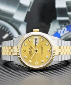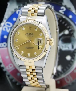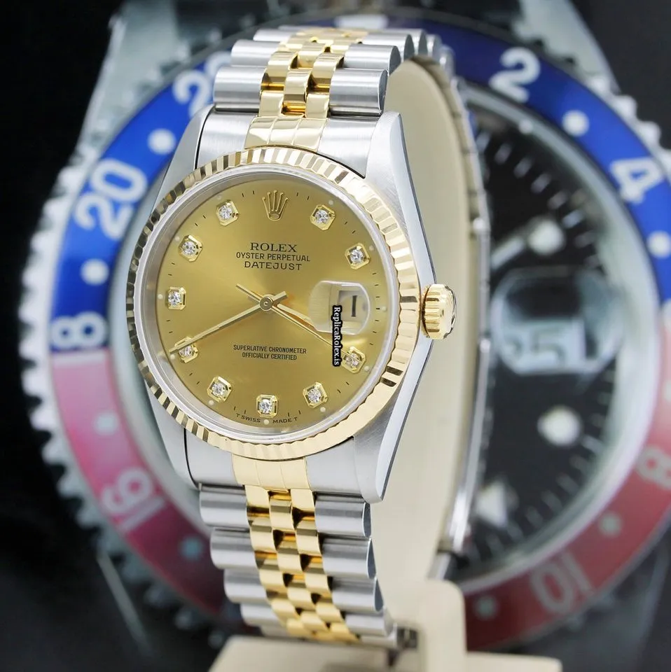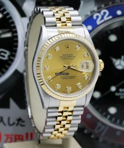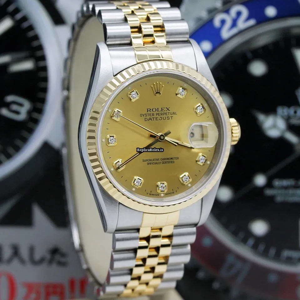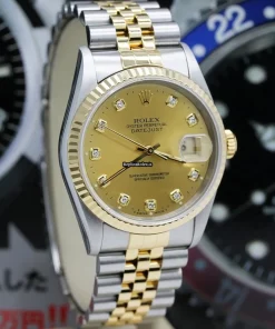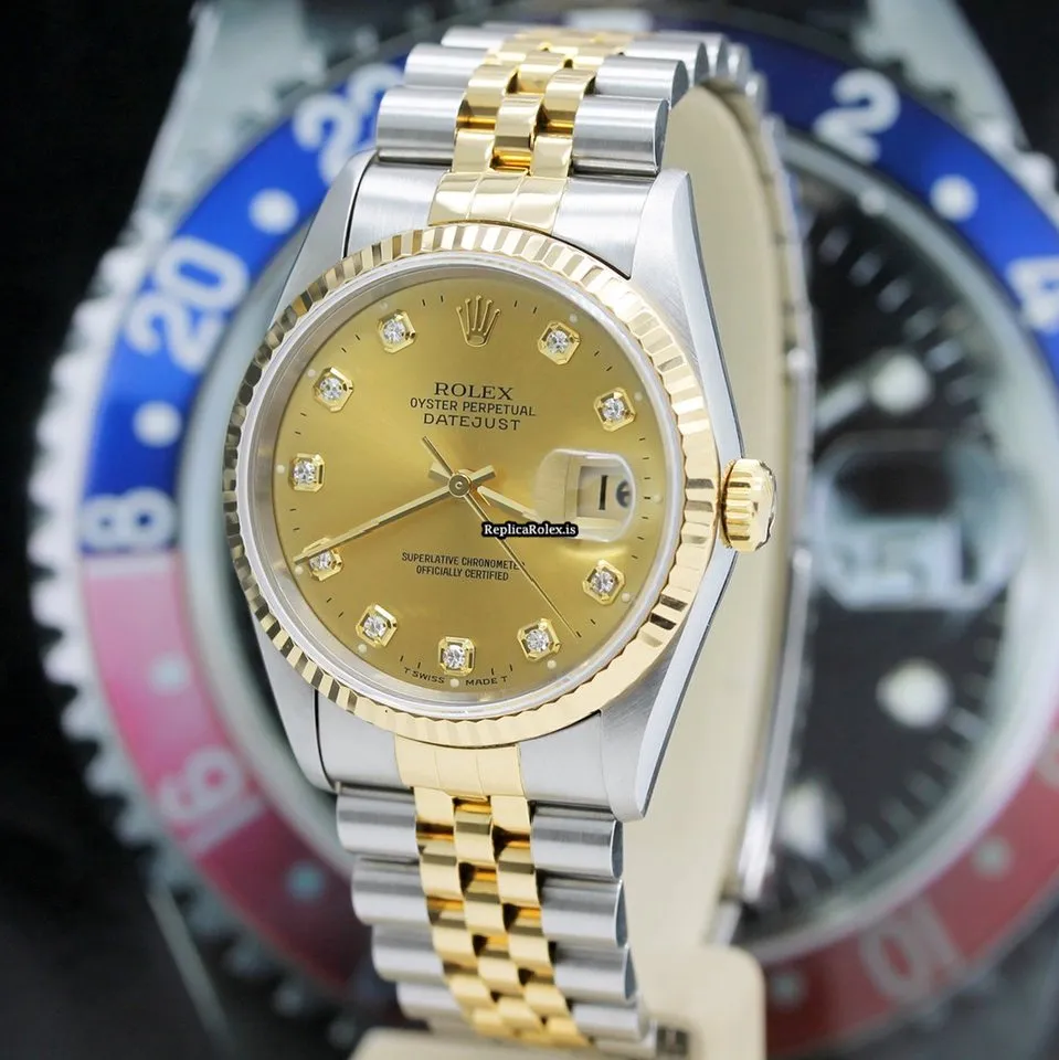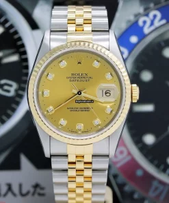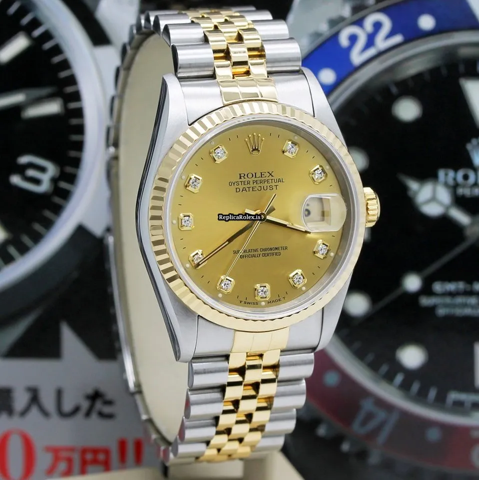 Tags: 10m atm, 12mm, 16233, 31 jewels, 36mm case diameter, 42h power reserve, automatic movement, caliber 3135, champagne dial, fold clasp, gold/steel bracelet color, gold/steel bracelet material, mens watches, no numerals, sapphire crystal, steel case material, steel clasp material, unisex watches, yellow gold bezel material
