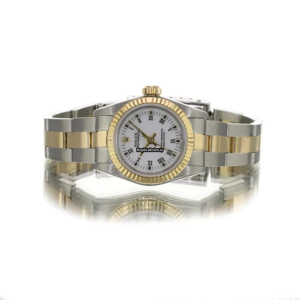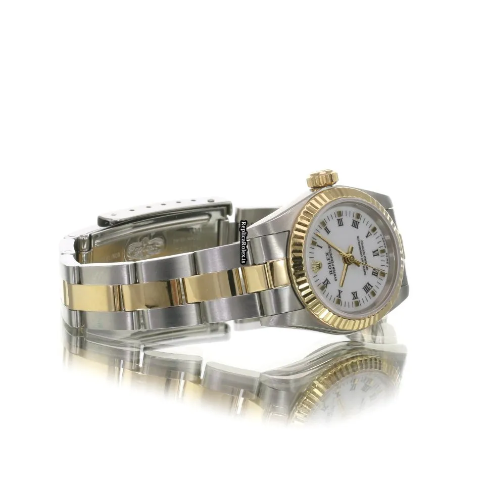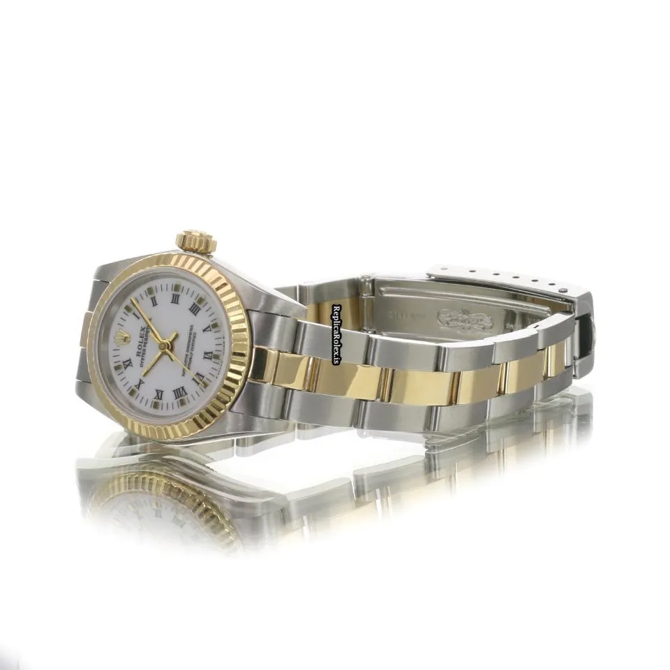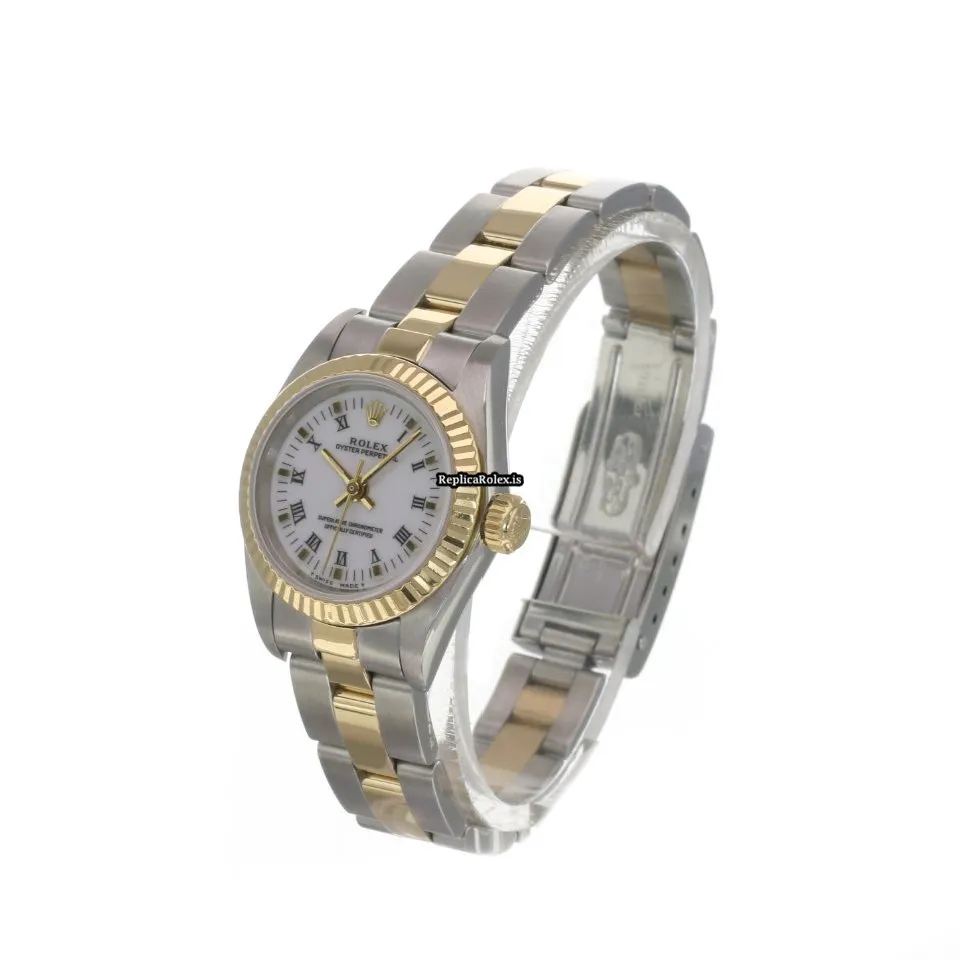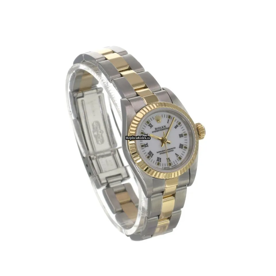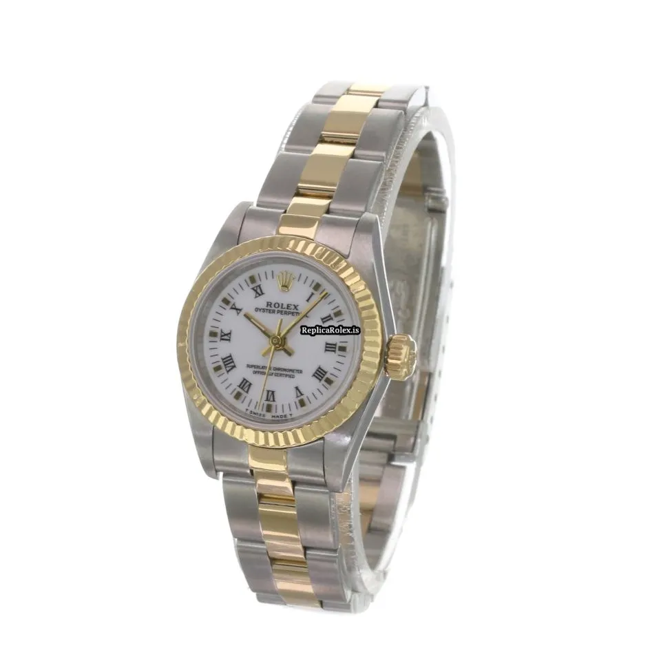 High Quality Fake Rolex Oyster Perpetual 67193 Caliber 2130 Automatic Movement 24x26mm Gold/steel Case Womens Watch