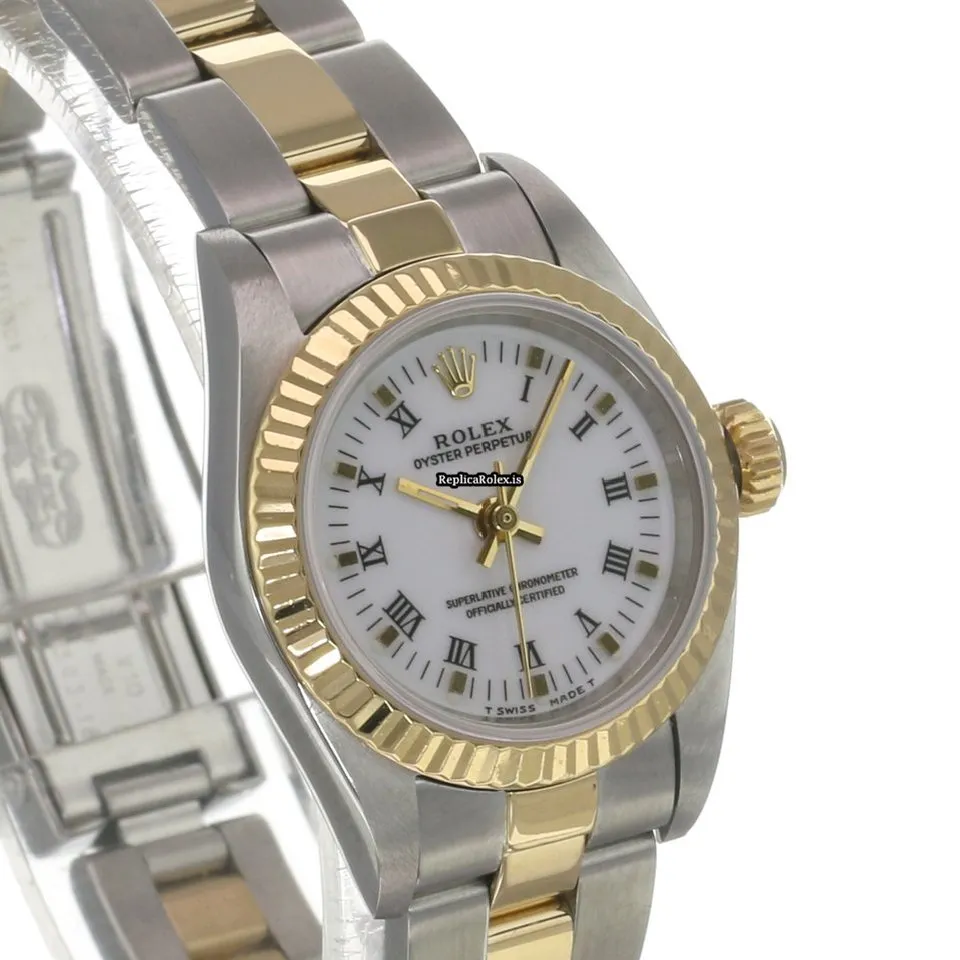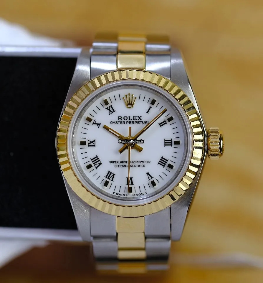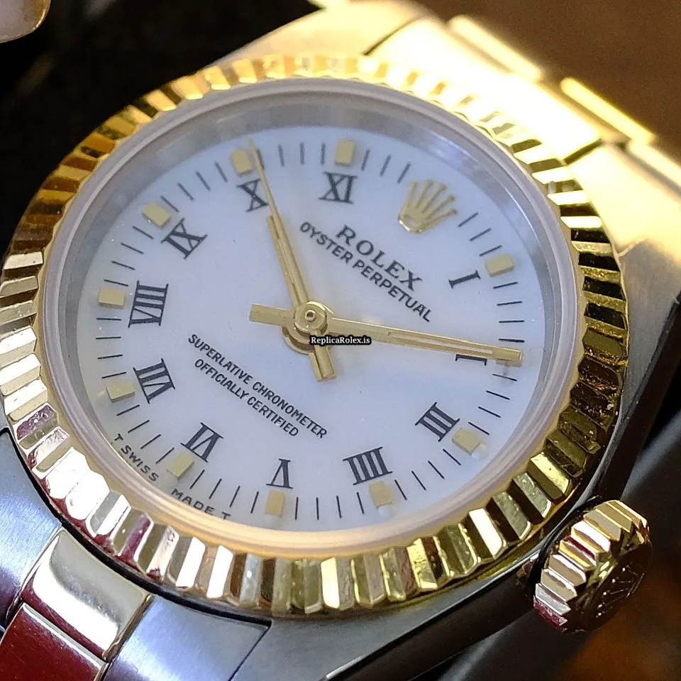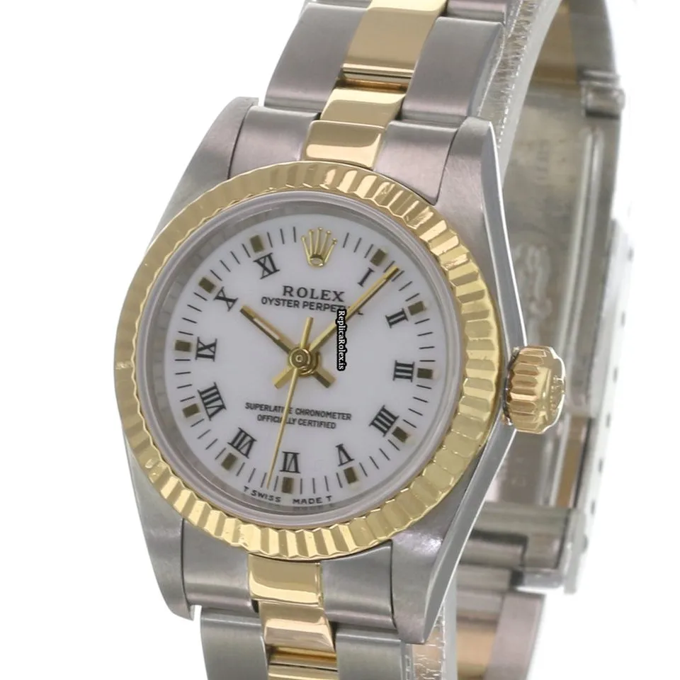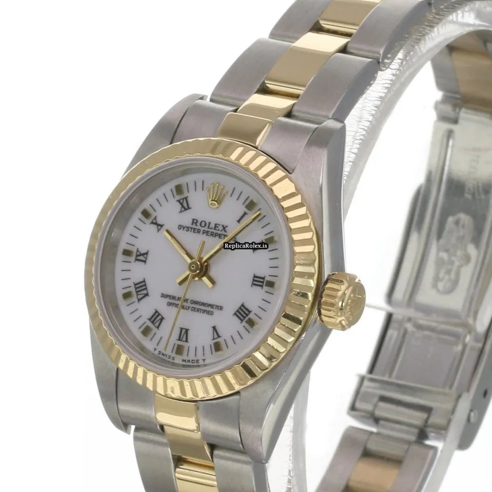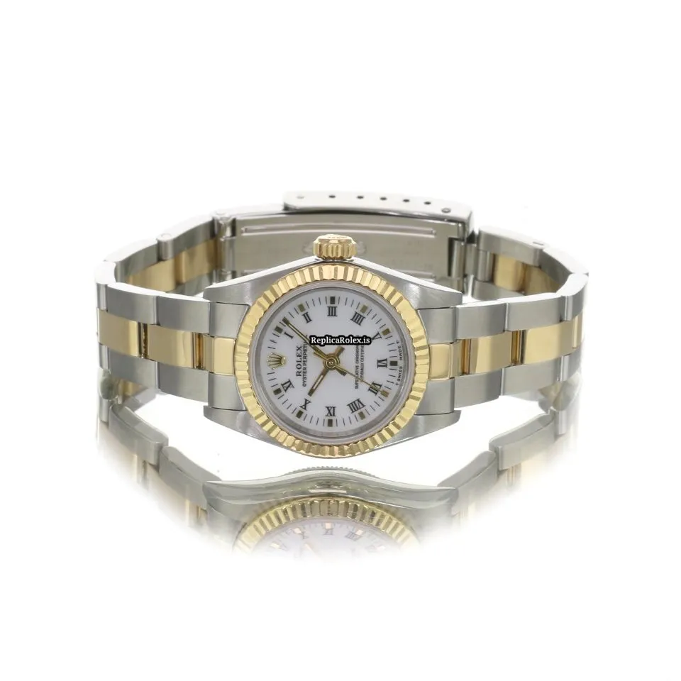 High Quality Fake Rolex Oyster Perpetual 67193 Caliber 2130 Automatic Movement 24x26mm Gold/steel Case Womens Watch