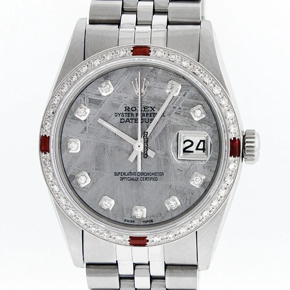 Tags: 20mm lug width, 27 jewels, 36mm case diameter, automatic movement, caliber 3035, fold clasp, grey dial, mens watches, sapphire crystal, steel bracelet color, steel bracelet material, steel case material, steel clasp material, unisex watches, white gold bezel material