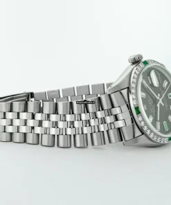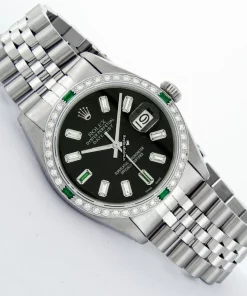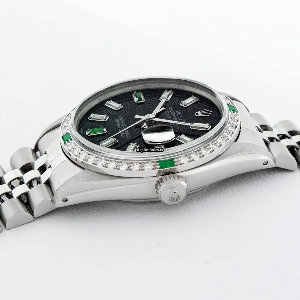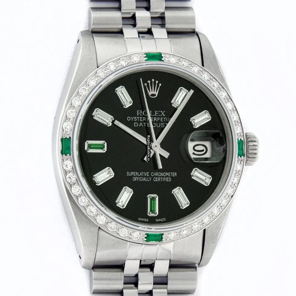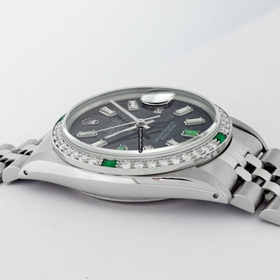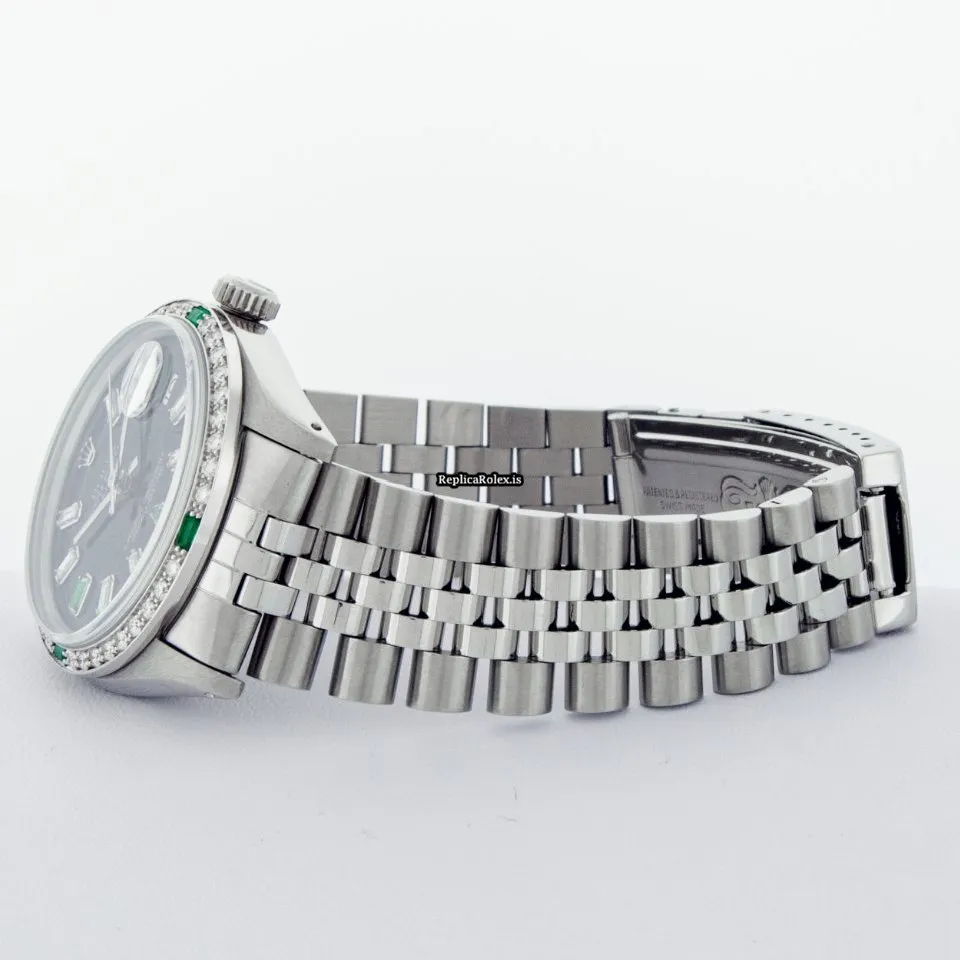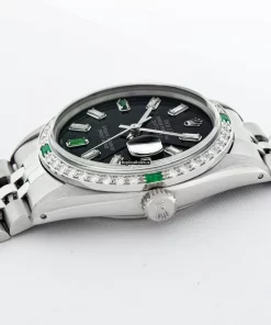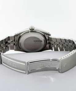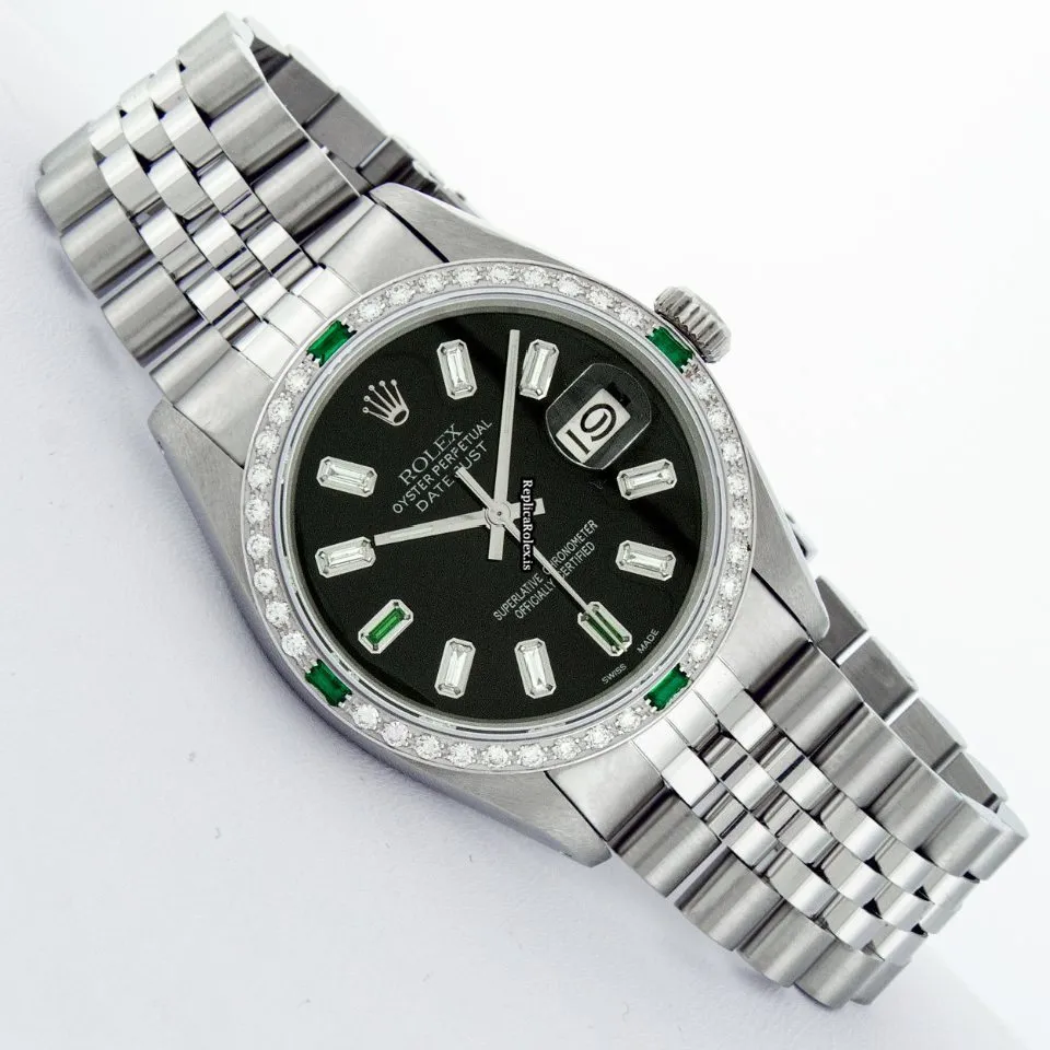 Tags: 16030, 20mm lug width, 27 jewels, 36mm case diameter, automatic movement, black dial, caliber 3035, fold clasp, mens watches, sapphire crystal, silver bracelet color, steel bracelet material, steel case material, steel clasp material, unisex watches, white gold bezel material