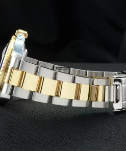 Tags: 16803, 30m atm, 31 jewels, 40mm case diameter, 50h power reserve, automatic movement, blue dial, caliber 3035, fold clasp, gold/steel bracelet color, gold/steel bracelet material, gold/steel case material, mens watches, no numerals, sapphire crystal, steel clasp material, unisex watches, yellow gold bezel material