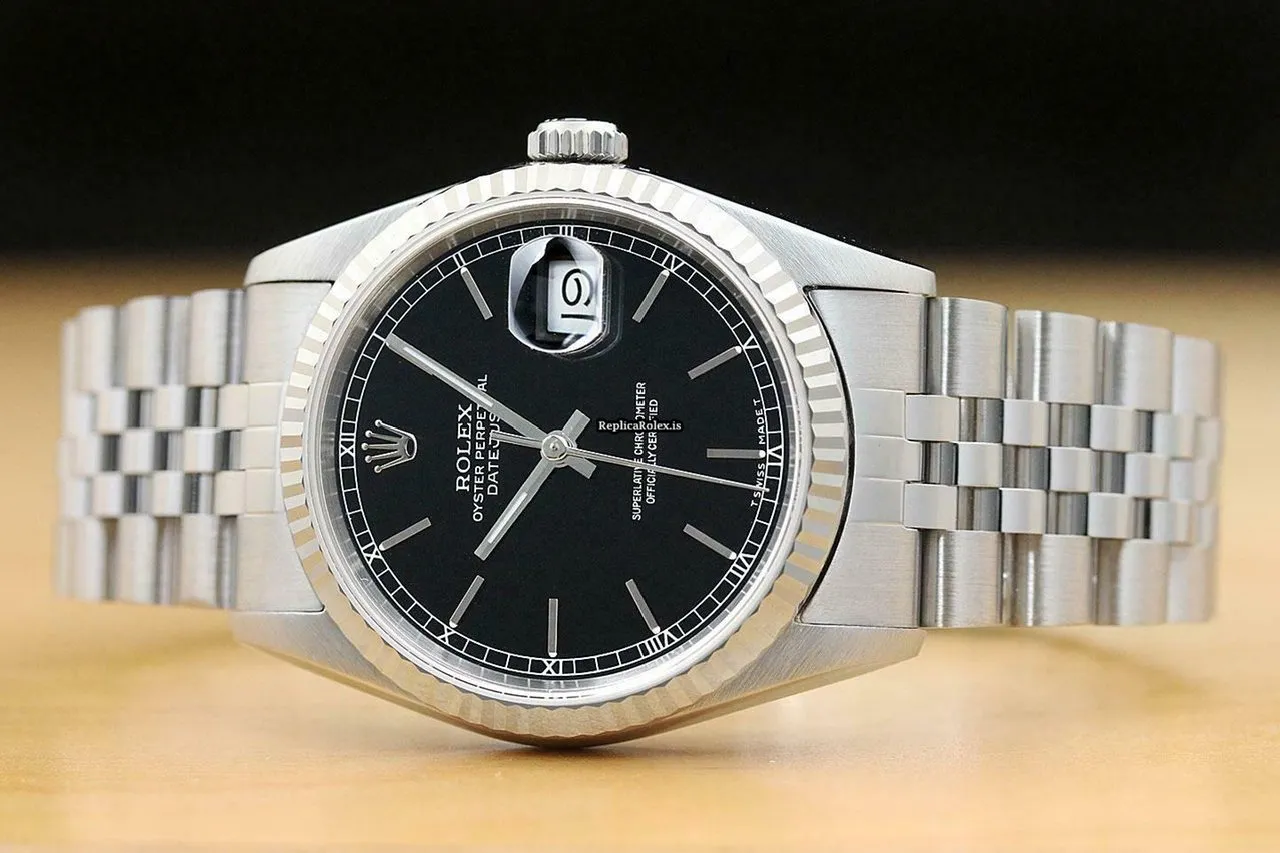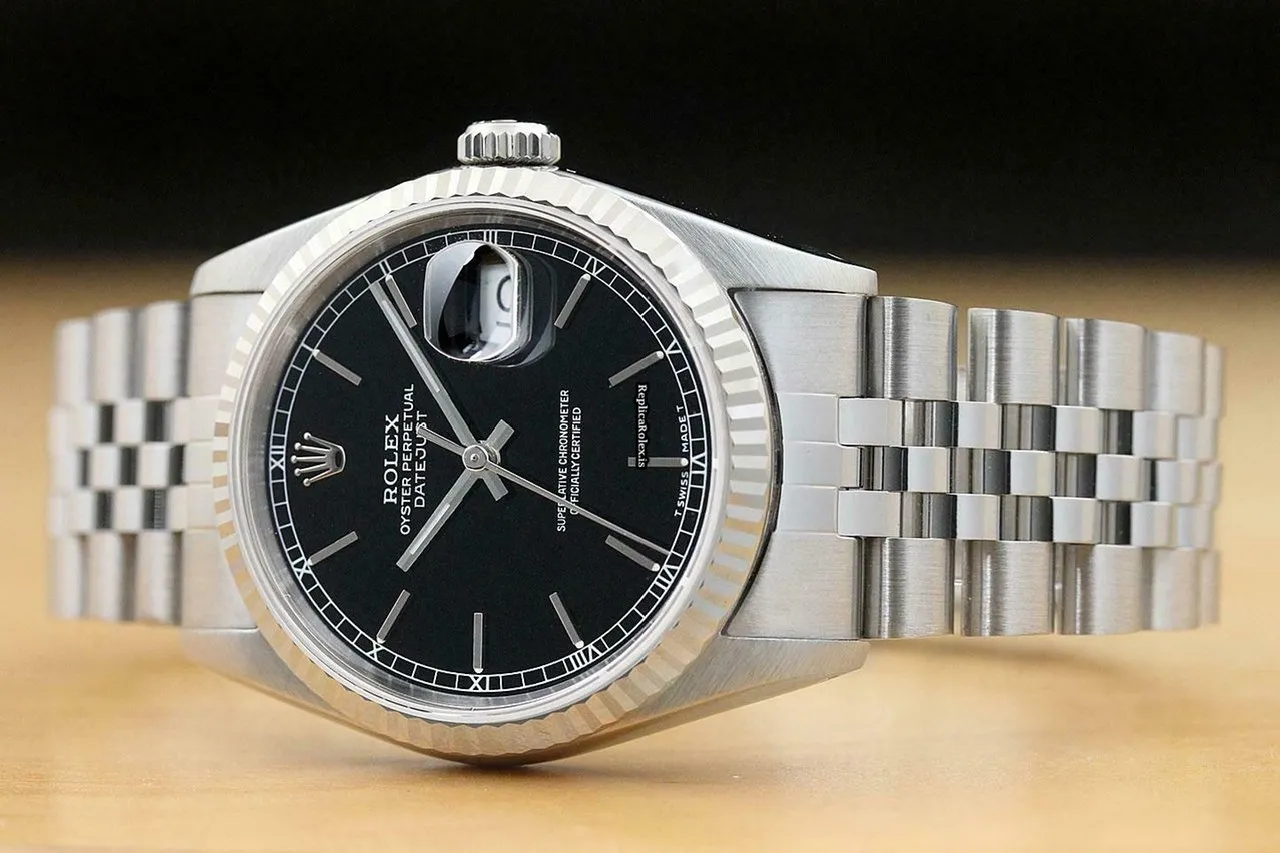 Tags: 16234, 191mm bracelet length, 20mm lug width, 31 jewels, 36mm case diameter, automatic movement, black dial, caliber 3135, mens watches, sapphire crystal, steel bracelet color, steel bracelet material, steel case material, unisex watches, white gold bezel material