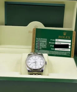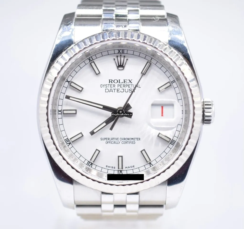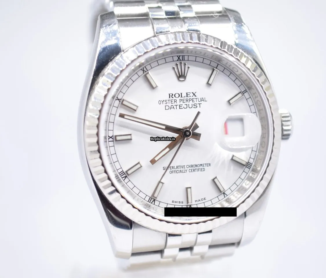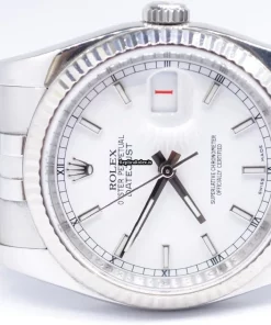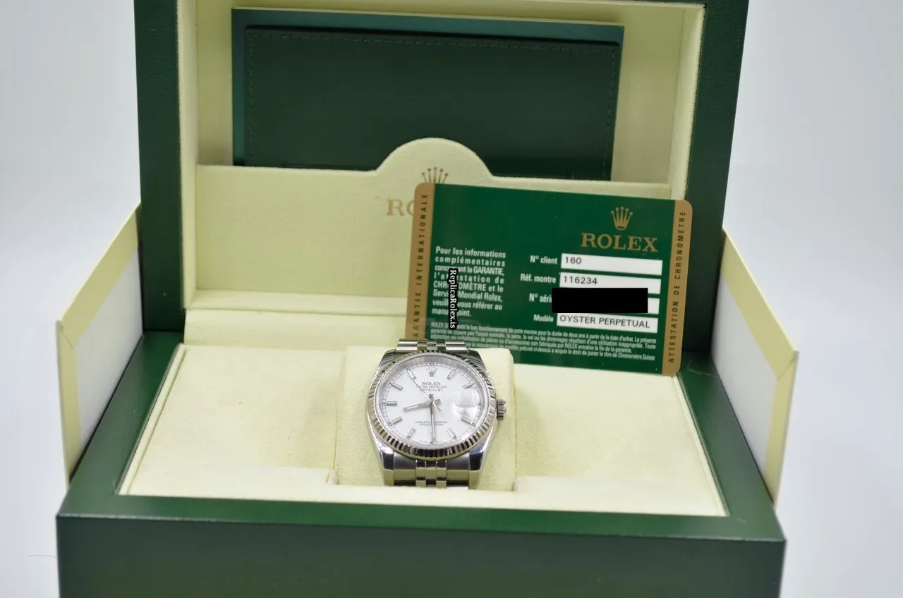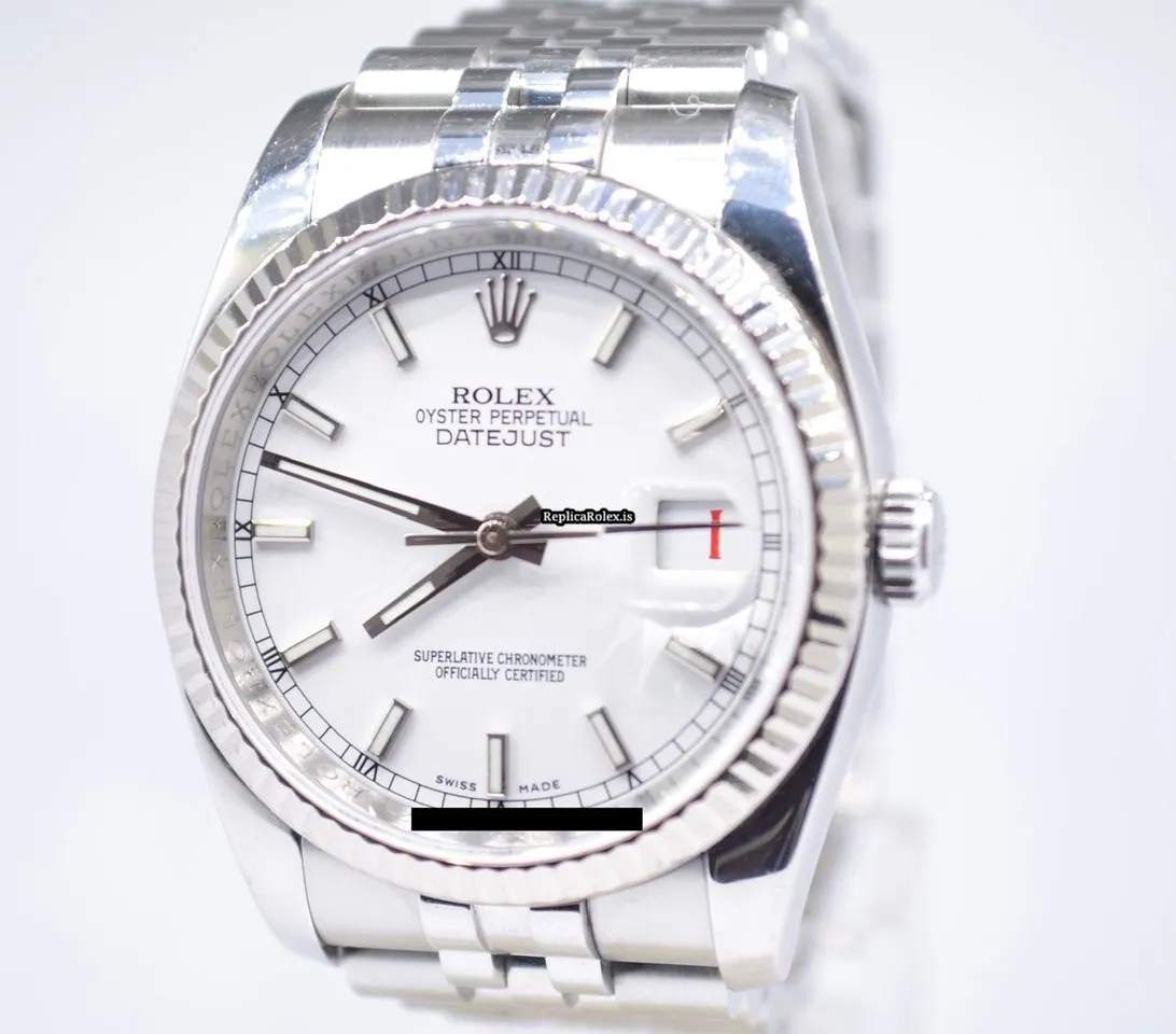 Tags: 10m atm, 116234, 31 jewels, 36mm case diameter, 48h power reserve, automatic movement, caliber 3135, fold clasp, mens watches, sapphire crystal, steel bracelet color, steel bracelet material, steel case material, steel clasp material, unisex watches, white dial, white gold bezel material