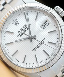 Tags: 16014, 191mm bracelet length, 20mm lug width, 27 jewels, 36mm case diameter, automatic movement, caliber 3035, mens watches, plexiglass crystal, silver dial, steel bracelet color, steel bracelet material, steel case material, unisex watches, white gold bezel material