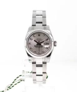 Tags: 10m atm, 179174-, 26mm case diameter, 31 jewels, 48h power reserve, automatic movement, caliber 2235, fold clasp, no numerals, sapphire crystal, silver dial, steel bracelet color, steel bracelet material, steel case material, steel clasp material, white gold bezel material, womens watches
