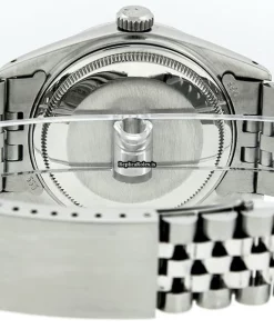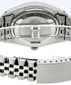 Tags: 16014, 20mm lug width, 27 jewels, 36mm case diameter, automatic movement, caliber 3035, fold clasp, mens watches, sapphire crystal, steel bracelet color, steel bracelet material, steel case material, steel clasp material, unisex watches, white dial, white gold bezel material