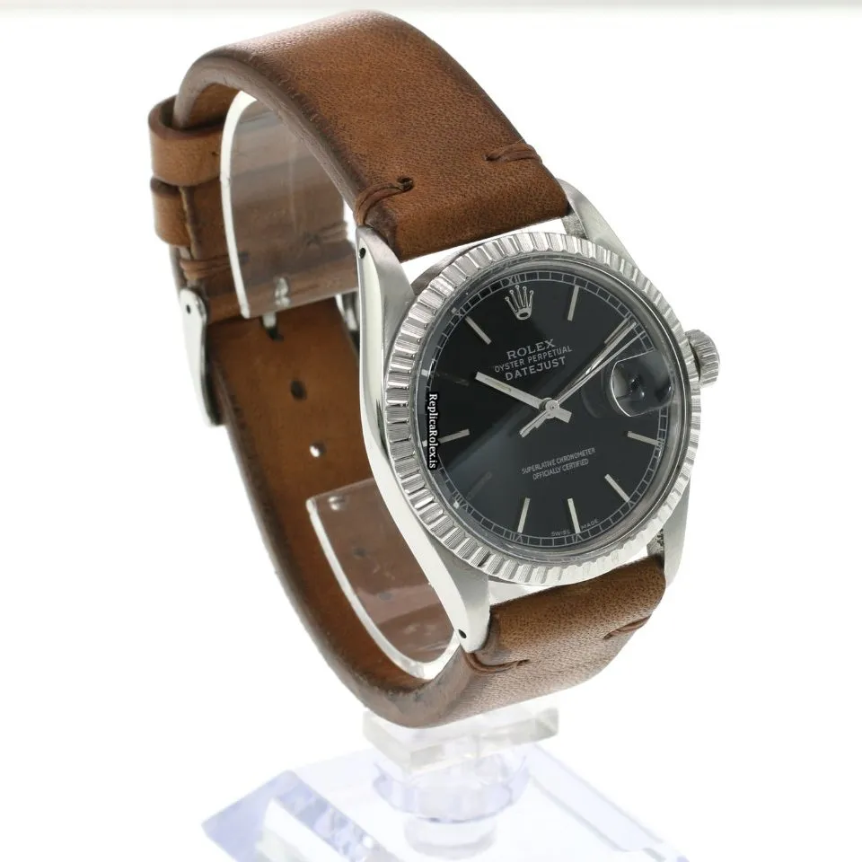 Tags: 10m atm, 16030, 27 jewels, 36x44mm case diameter, 42h power reserve, automatic movement, black dial, caliber 3035, fold clasp, leather bracelet material, mens watches, no numerals, plexiglass crystal, steel bezel material, steel bracelet color, steel case material, steel clasp material, unisex watches