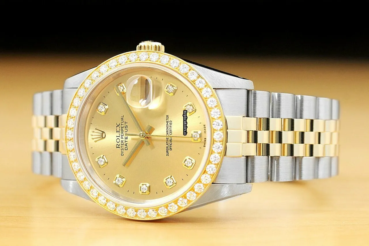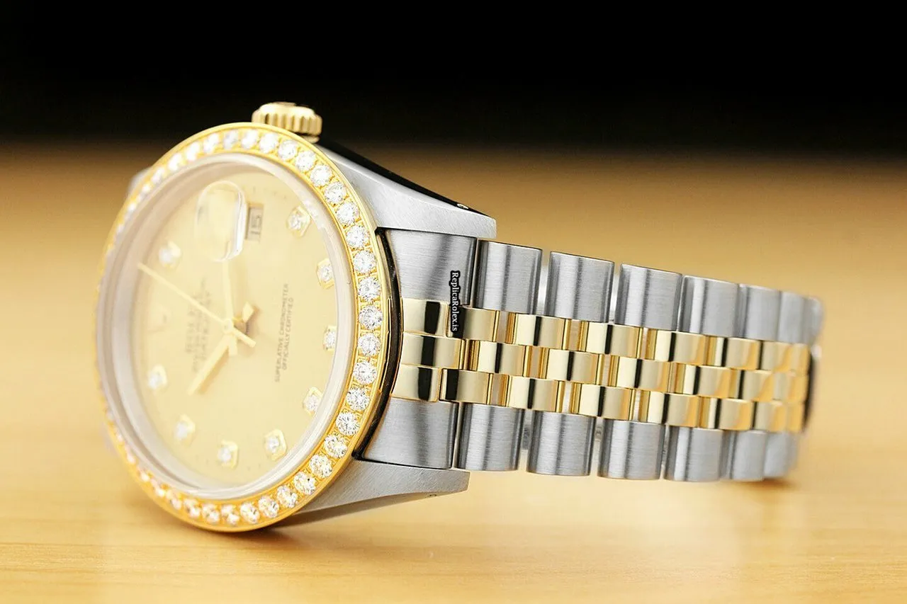 Tags: 16233, 191mm bracelet length, 20mm lug width, 36mm case diameter, automatic movement, caliber 3135, champagne dial, gold/steel bracelet color, gold/steel bracelet material, mens watches, sapphire crystal, steel case material, unisex watches, yellow gold bezel material