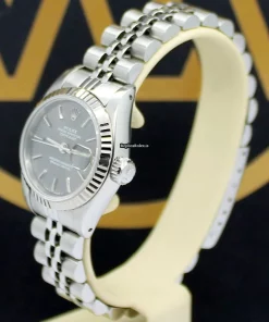 Tags: 10m atm, 13mm lug width, 26mm case diameter, 31 jewels, 69174, automatic movement, caliber 2135, fold clasp, grey dial, no numerals, sapphire crystal, steel bracelet color, steel bracelet material, steel case material, steel clasp material, white gold bezel material, womens watches