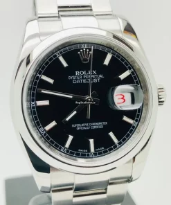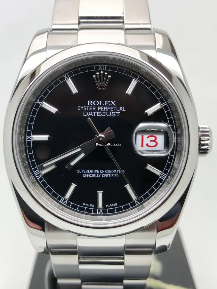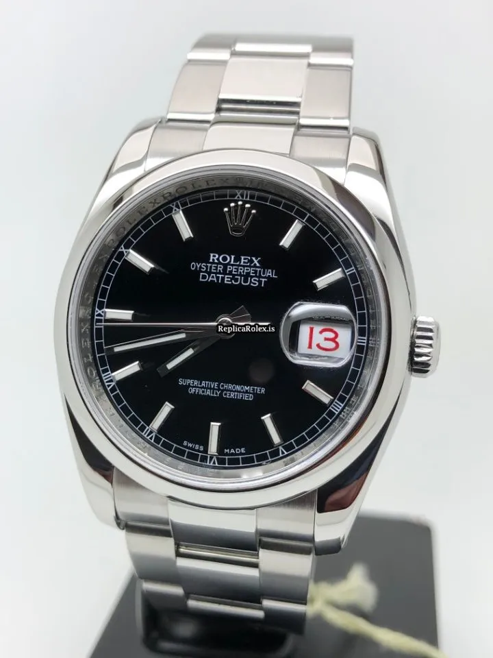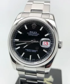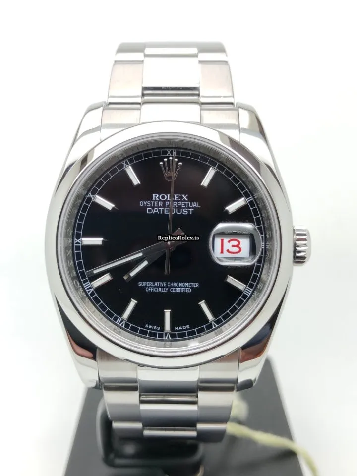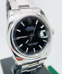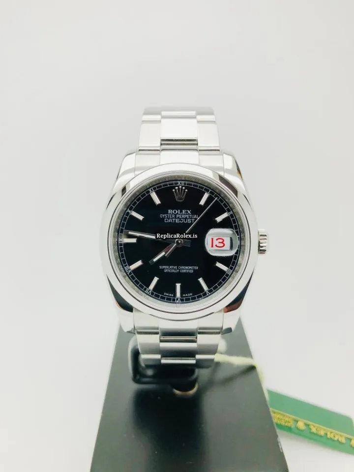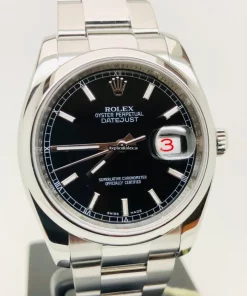 Tags: 10m atm, 116200, 31 jewels, 36mm case diameter, 48h power reserve, automatic movement, black dial, caliber 3135, fold clasp, mens watches, sapphire crystal, steel bezel material, steel bracelet color, steel bracelet material, steel case material, steel clasp material, unisex watches