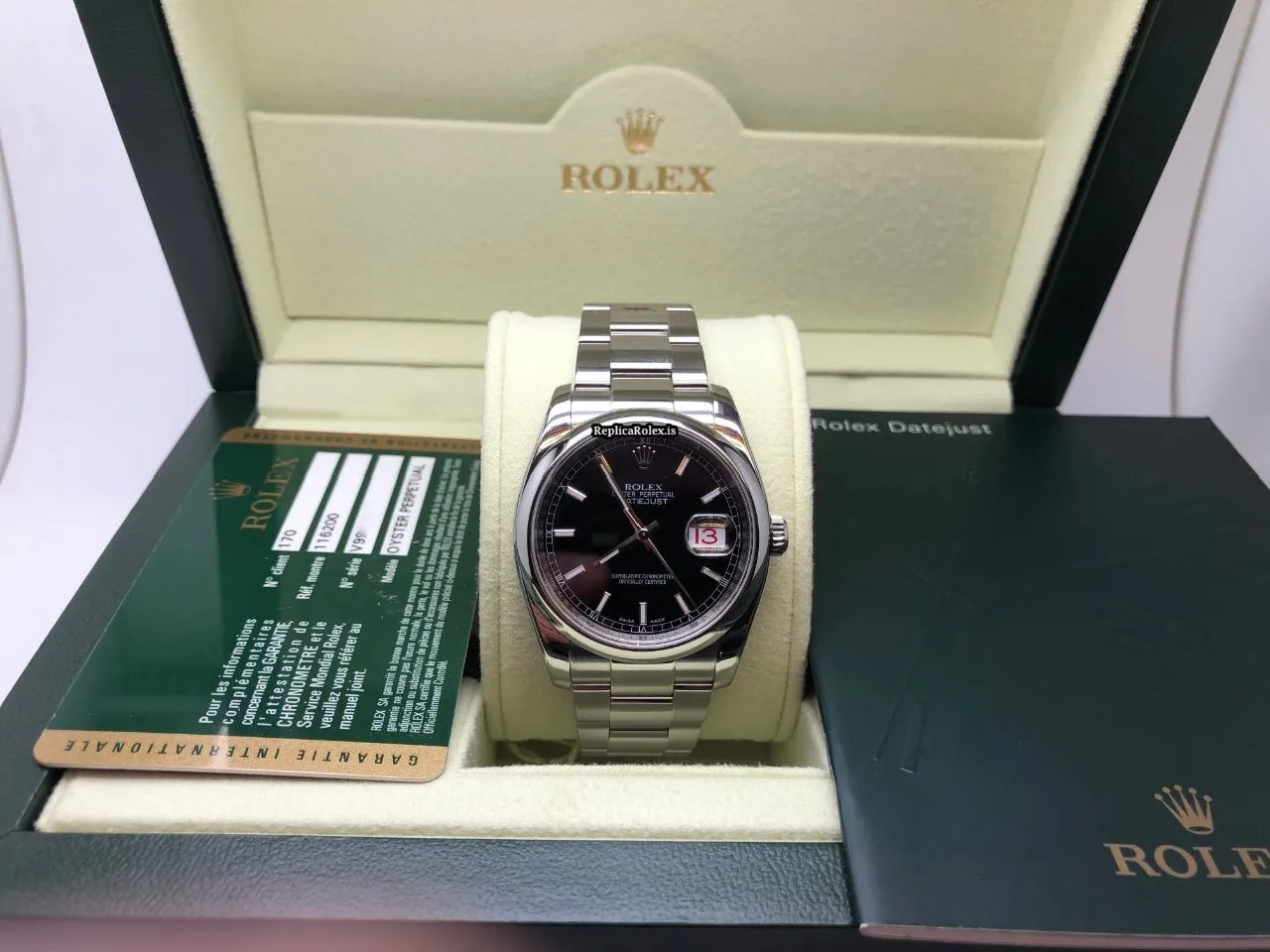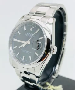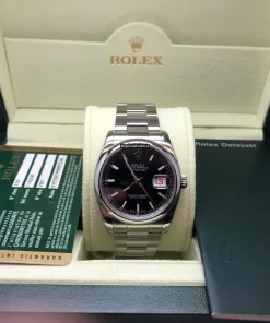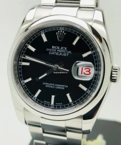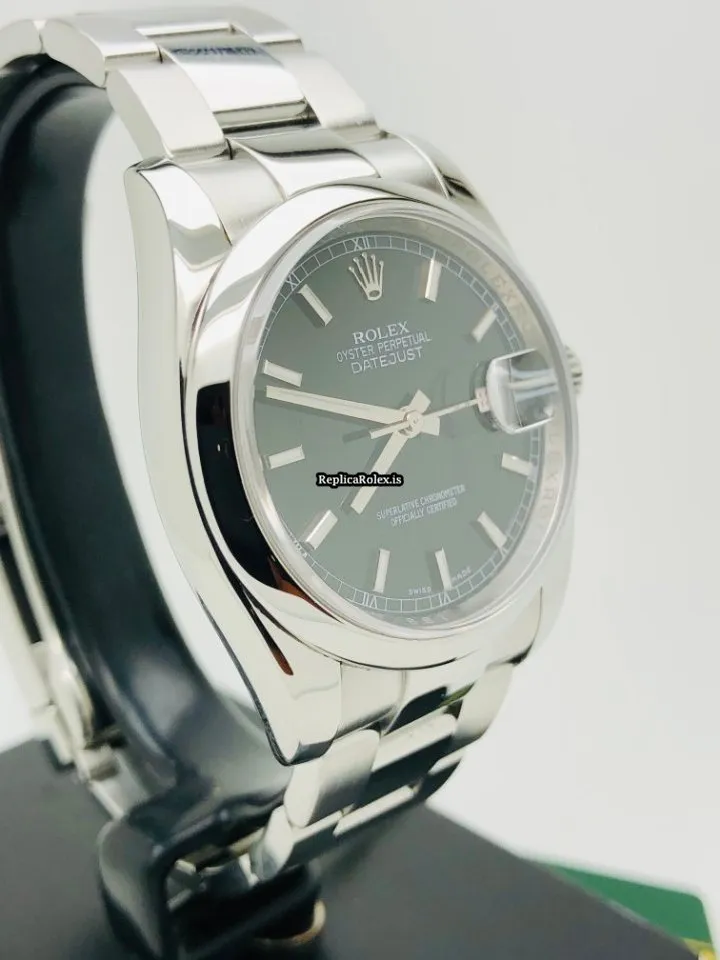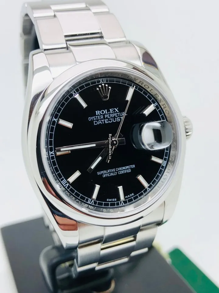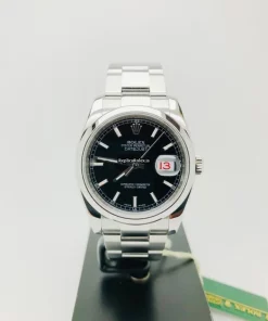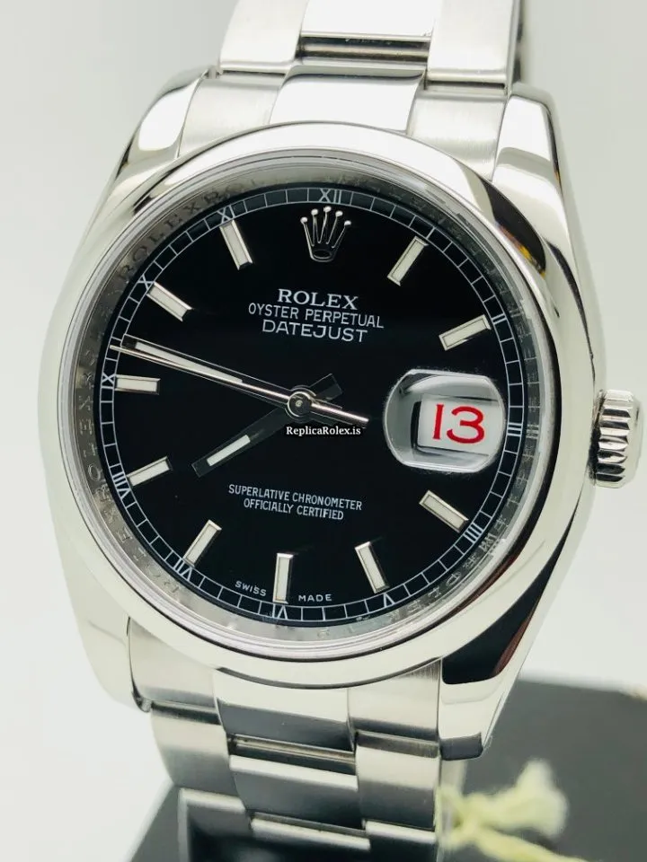 Tags: 10m atm, 116200, 31 jewels, 36mm case diameter, 48h power reserve, automatic movement, black dial, caliber 3135, fold clasp, mens watches, sapphire crystal, steel bezel material, steel bracelet color, steel bracelet material, steel case material, steel clasp material, unisex watches