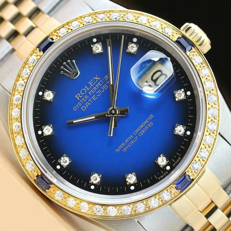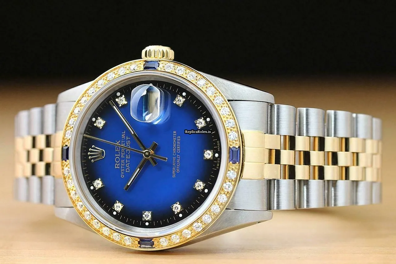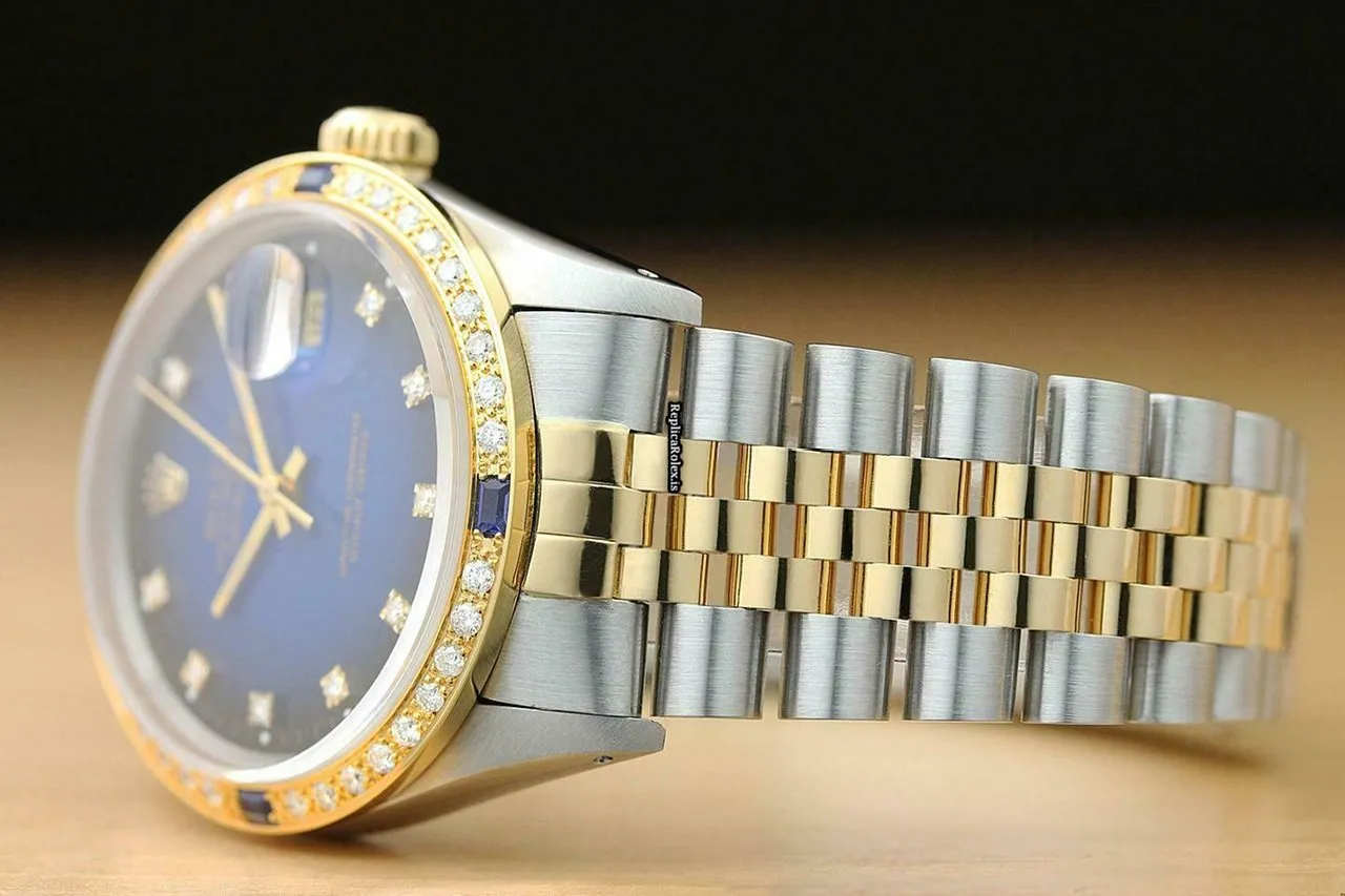 Tags: 16013, 191mm bracelet length, 20mm lug width, 27 jewels, 36mm case diameter, automatic movement, blue dial, caliber 3035, gold/steel bracelet color, gold/steel bracelet material, mens watches, sapphire crystal, steel case material, unisex watches, yellow gold bezel material