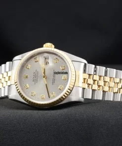 Tags: 10m atm, 16233, 31 jewels, 36mm case diameter, 48h power reserve, automatic movement, caliber 3135, fold clasp, gold/steel bracelet color, gold/steel bracelet material, grey dial, mens watches, no numerals, sapphire crystal, steel case material, steel clasp material, unisex watches, yellow gold bezel material