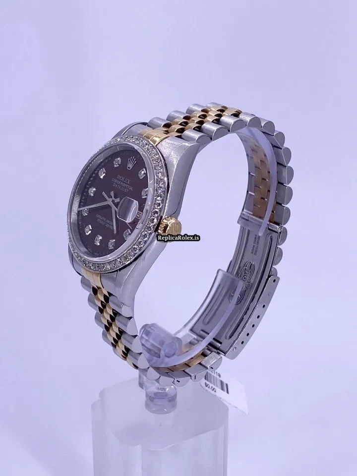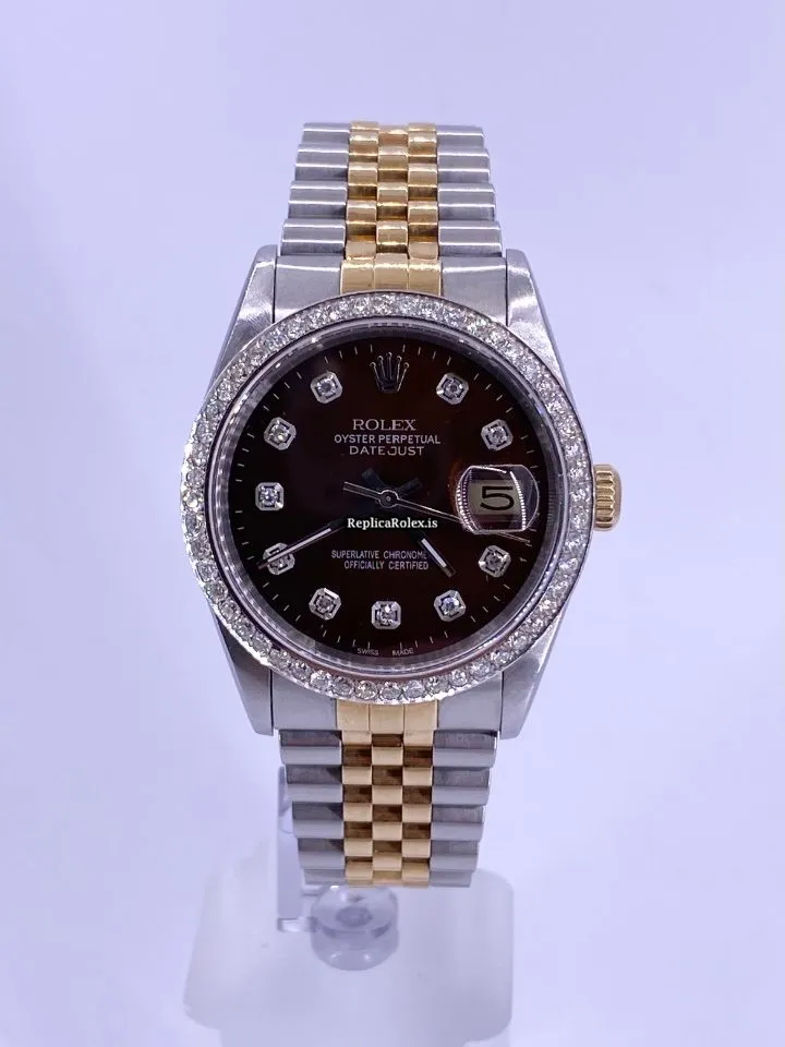 Tags: 10m atm, 16233, 31 jewels, 36mm case diameter, 42h power reserve, automatic movement, brown dial, caliber 3135, fold clasp, gold/steel bracelet color, gold/steel bracelet material, gold/steel case material, mens watches, sapphire crystal, steel clasp material, unisex watches, yellow gold bezel material