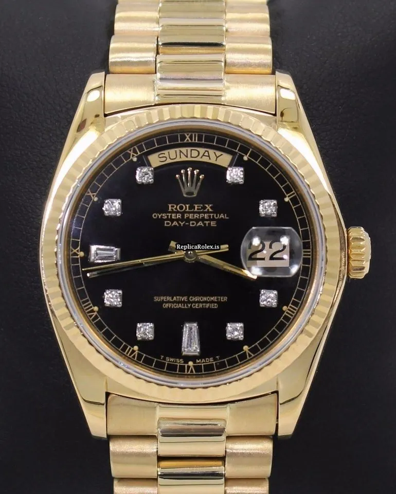 Luxury Fake Rolex Day-date 36 18038 Automatic Movement 36mm Yellow Gold Case Watch