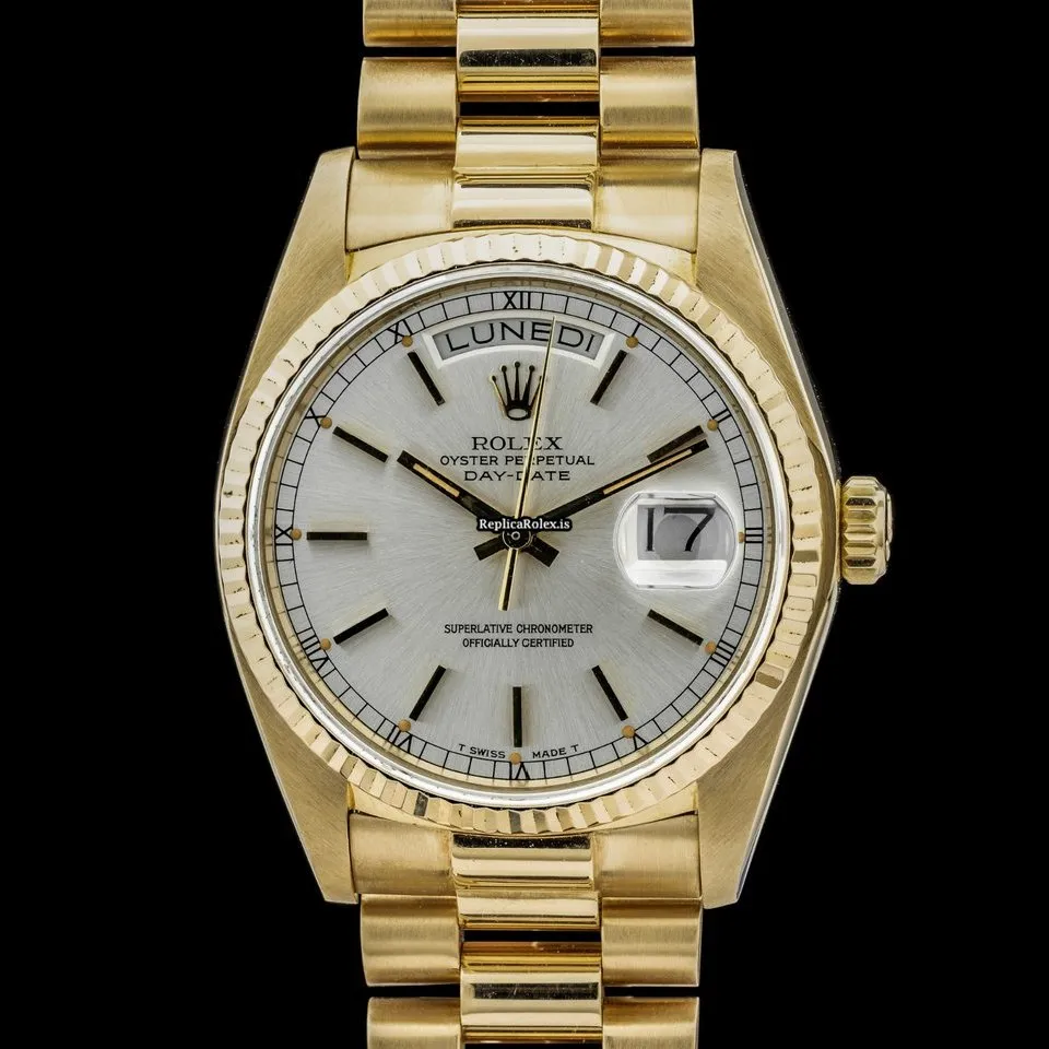 Luxury Fake Rolex Day-date 36 18038 Caliber 3055 Automatic Movement 36mm Yellow Gold Case Mens/unisex Watch