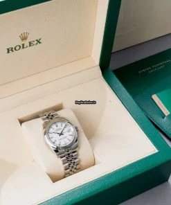 Tags: 10m atm, 178240, 31 jewels, 31mm case diameter, 48h power reserve, automatic movement, caliber 2235, fold clasp, sapphire crystal, steel bezel material, steel bracelet color, steel bracelet material, steel case material, steel clasp material, white dial, womens watches