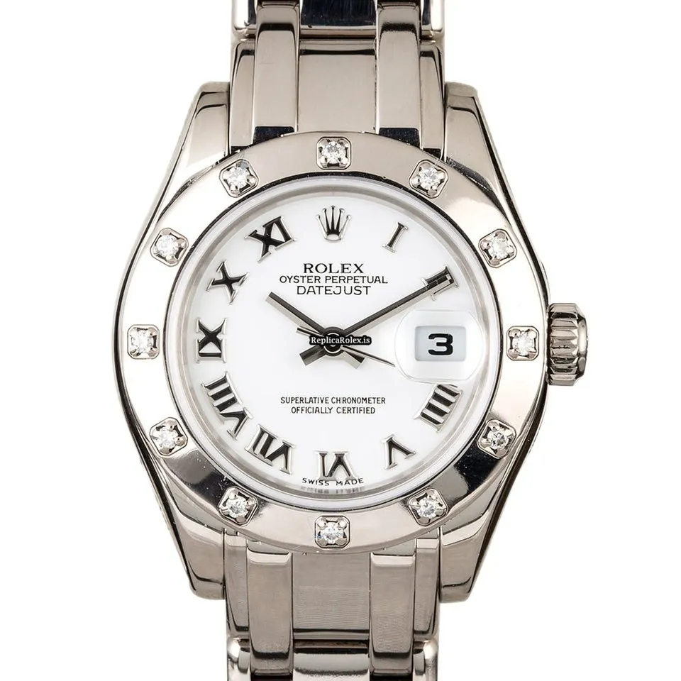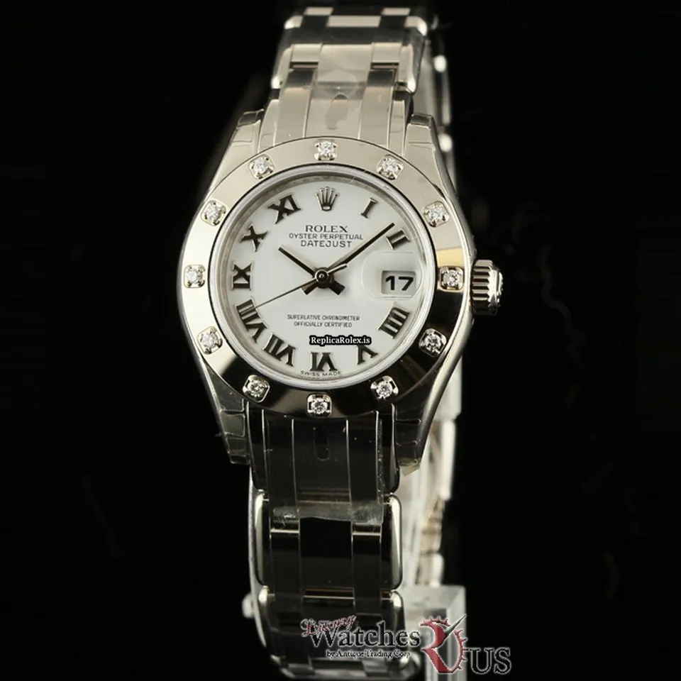 Luxury Replica Rolex Lady-datejust Pearlmaster 80319 Caliber 2235 Automatic Movement 29mm White Gold Case Womens Watch