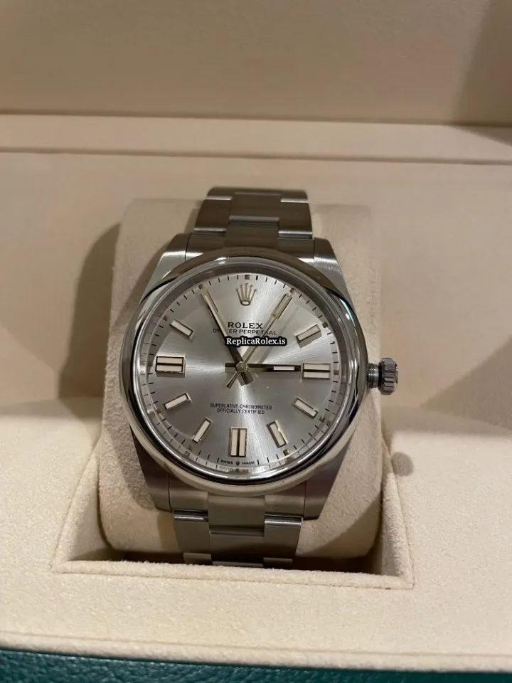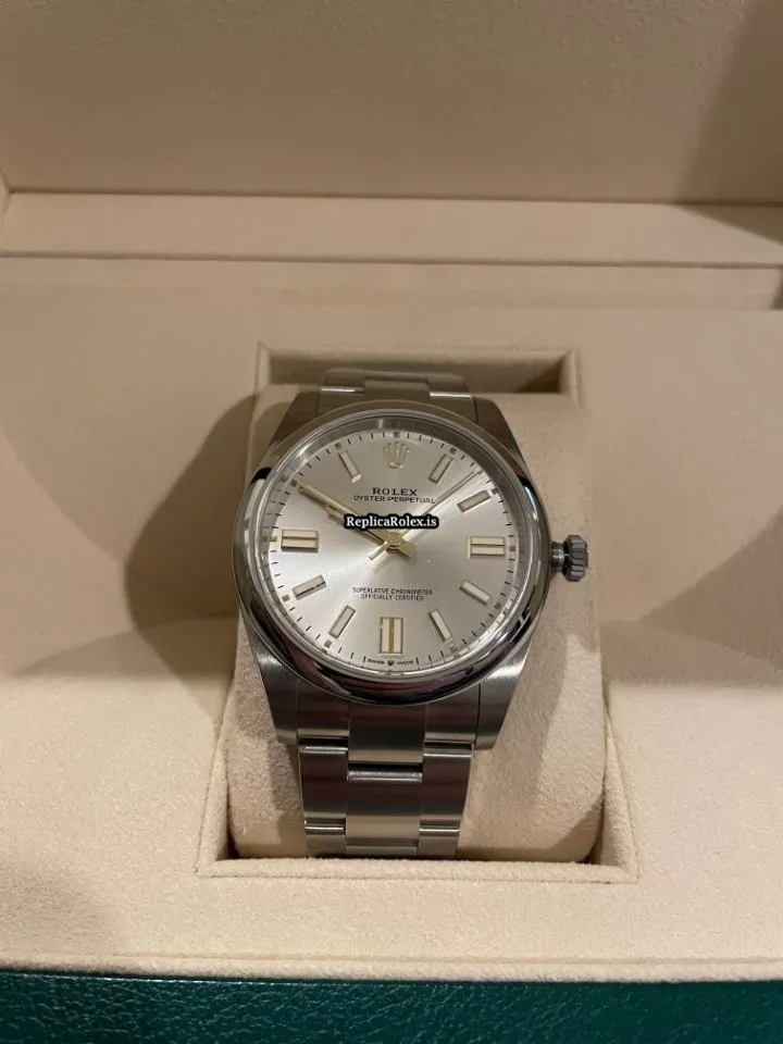 Tags: 10m atm, 124300, 31 jewels, 41mm case diameter, 70h power reserve, automatic movement, caliber 3135, caliber 3230, double-fold clasp, mens watches, no numerals, sapphire crystal, silver dial, steel bezel material, steel bracelet color, steel bracelet material, steel case material, steel clasp material, unisex watches