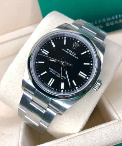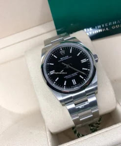 Tags: 10m atm, 126000, 31 jewels, 36mm case diameter, 70h power reserve, automatic movement, black dial, caliber 3230, fold clasp, mens watches, no numerals, sapphire crystal, steel bezel material, steel bracelet color, steel bracelet material, steel case material, steel clasp material, unisex watches