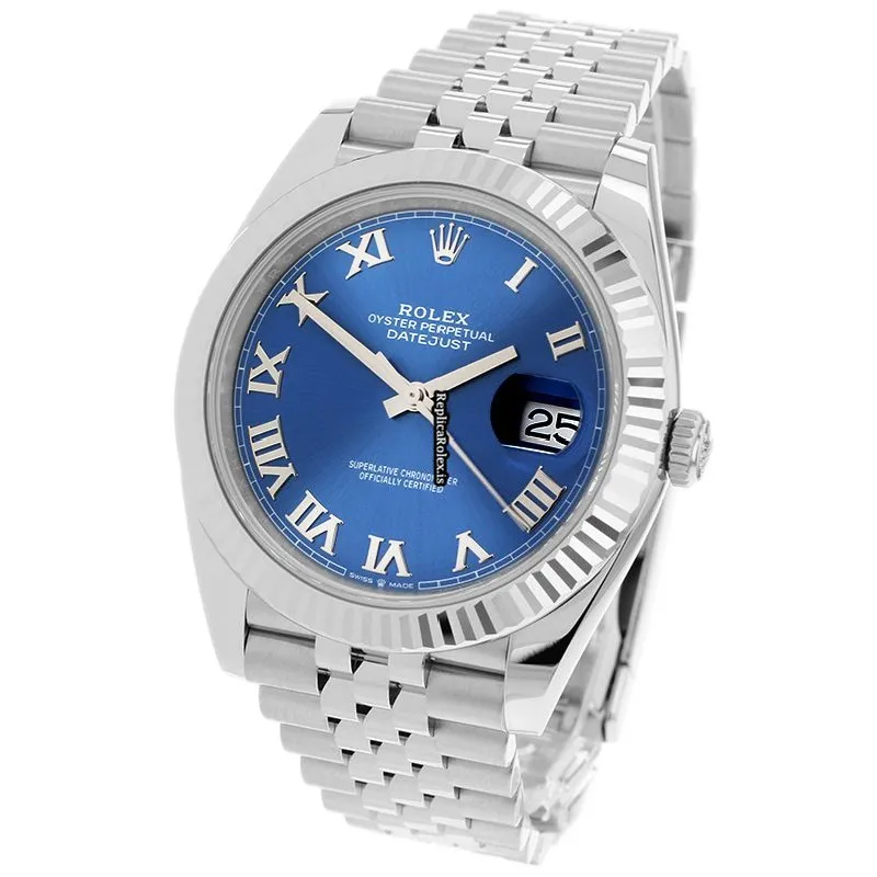 Tags: 126334, 41mm case diameter, automatic movement, blue dial, fold clasp, mens watches, roman numerals, sapphire crystal, steel bracelet color, steel bracelet material, steel case material, unisex watches, white gold bezel material