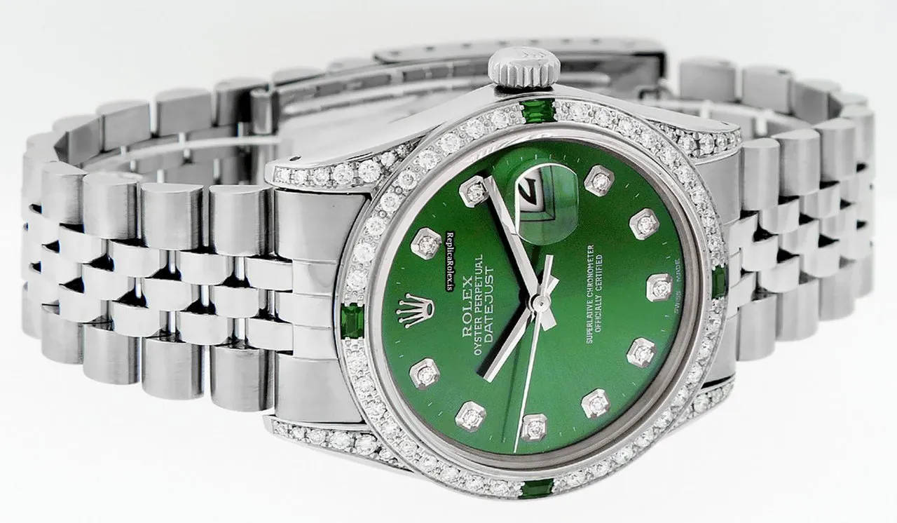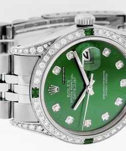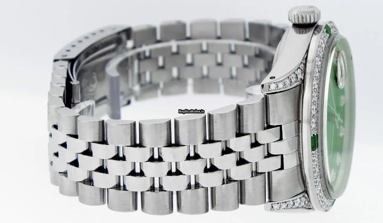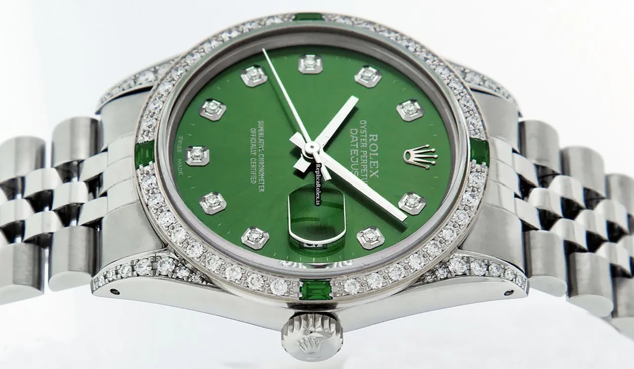 Tags: 16030, 20mm lug width, 27 jewels, 36mm case diameter, automatic movement, caliber 3035, fold clasp, green dial, mens watches, sapphire crystal, steel bracelet color, steel bracelet material, steel case material, steel clasp material, unisex watches, white gold bezel material