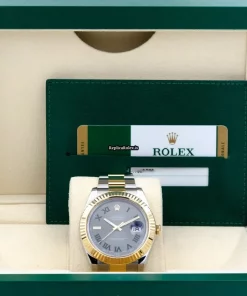 Tags: 10m atm, 116333, 31 jewels, 41mm case diameter, 48h power reserve, automatic movement, caliber 3135, caliber 3136, fold clasp, gold/steel bracelet color, gold/steel bracelet material, gold/steel case material, gold/steel clasp material, grey dial, mens watches, roman numerals, sapphire crystal, unisex watches, yellow gold bezel material
