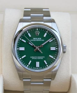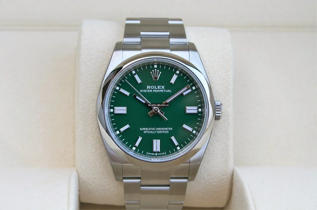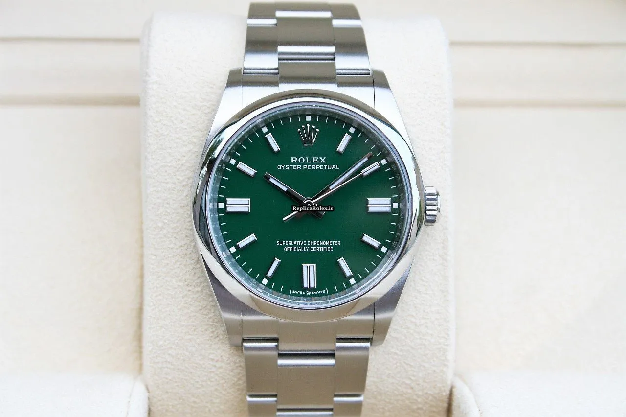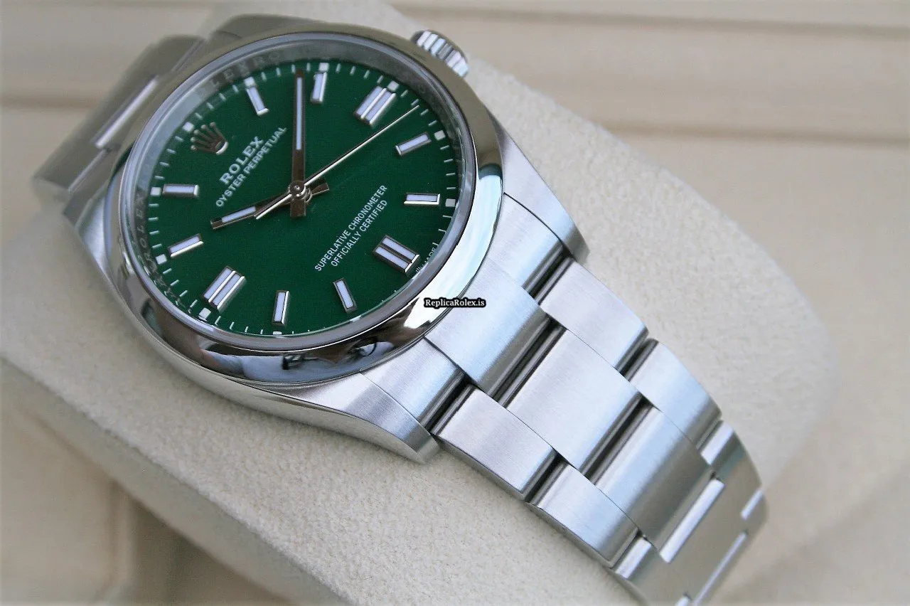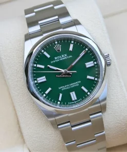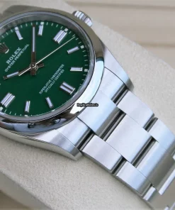 Tags: 10m atm, 126000, 31 jewels, 36mm case diameter, 70h power reserve, automatic movement, caliber 3230, fold clasp, green dial, mens watches, no numerals, sapphire crystal, steel bezel material, steel bracelet color, steel bracelet material, steel case material, steel clasp material, unisex watches
