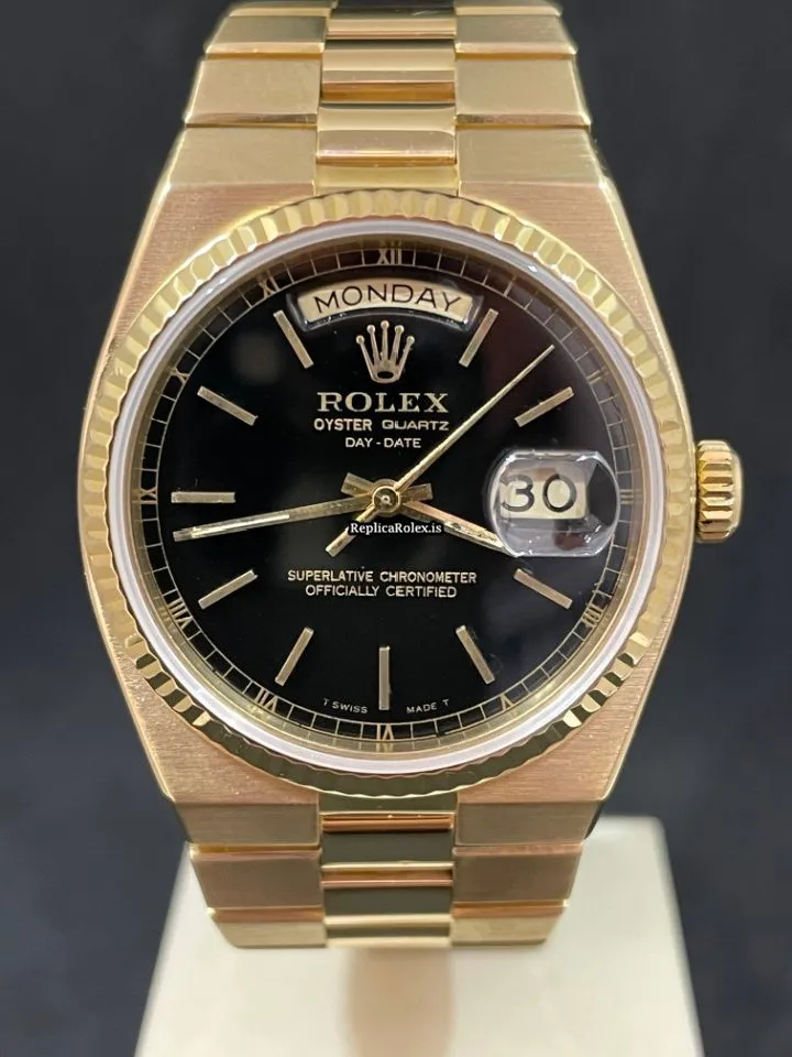 Nice Copy Rolex Day-date Oysterquartz 19018 Caliber 5055 Quartz Movement 36mm Yellow Gold Case Mens/unisex Watch