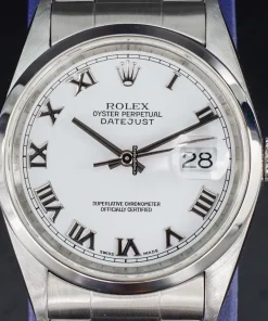 Tags: 10m atm, 16200, 31 jewels, 36mm case diameter, 48h power reserve, automatic movement, caliber 3135, fold clasp, mens watches, roman numerals, sapphire crystal, steel bezel material, steel bracelet color, steel bracelet material, steel case material, steel clasp material, unisex watches, white dial