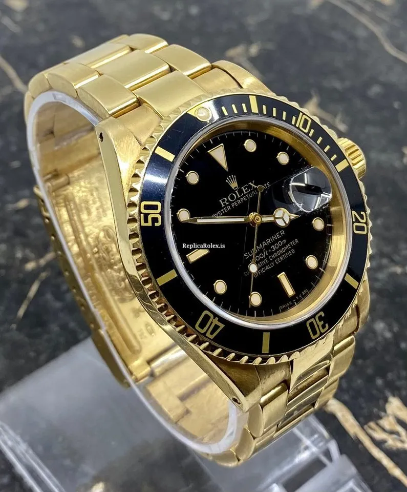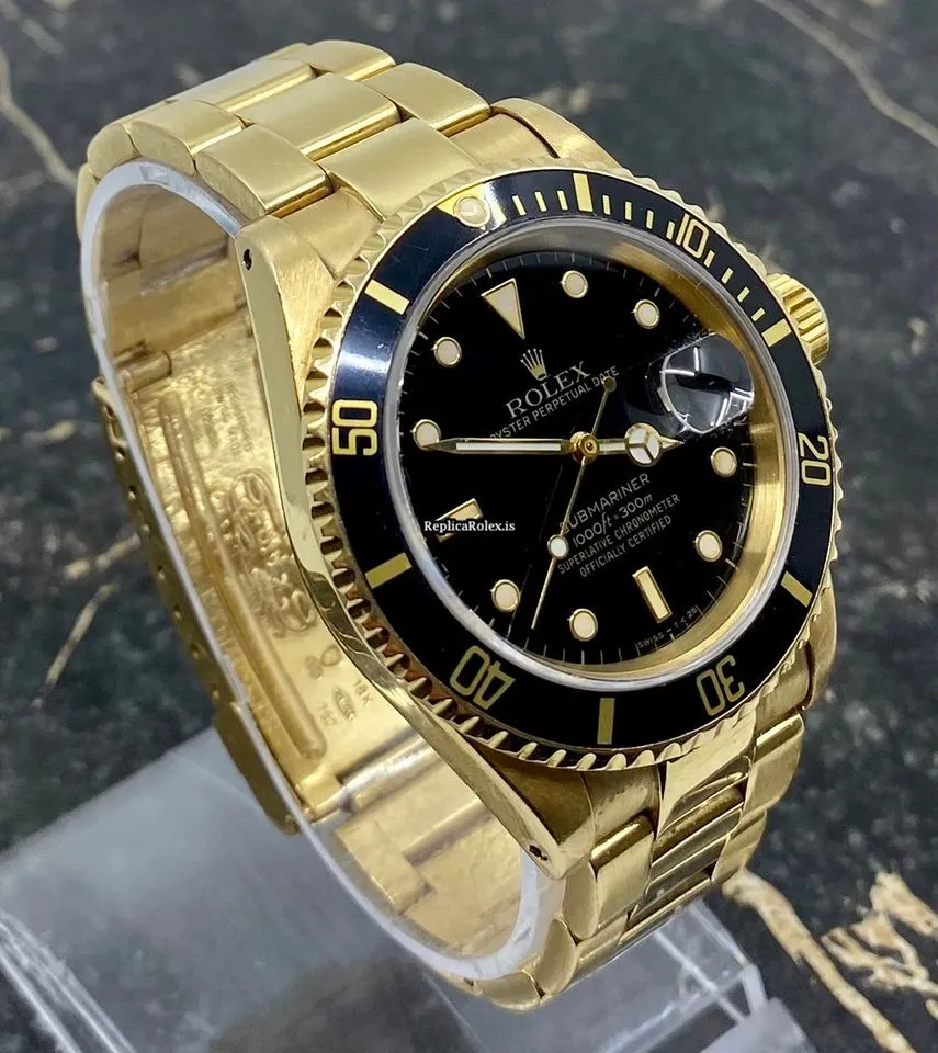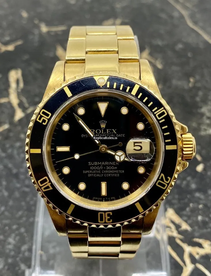 Perfect Copy Rolex Submariner Date 16618 Caliber 3135 Automatic Movement 40mm Yellow Gold Case Mens/unisex Watch