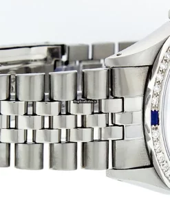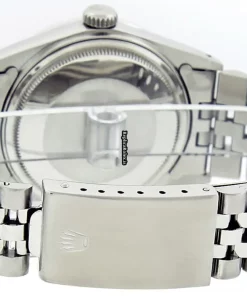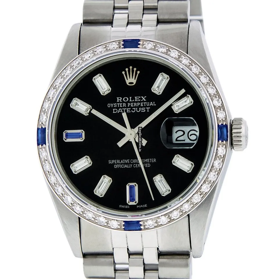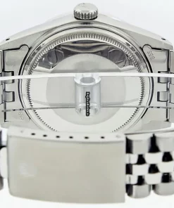 Tags: 20mm lug width, 27 jewels, 36mm case diameter, automatic movement, black dial, caliber 3035, fold clasp, mens watches, plastic crystal, silver bracelet color, steel bracelet material, steel case material, steel clasp material, unisex watches, white gold bezel material