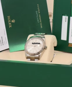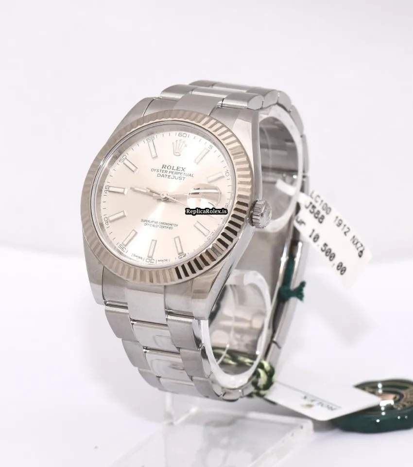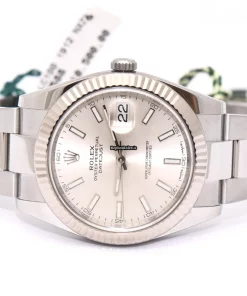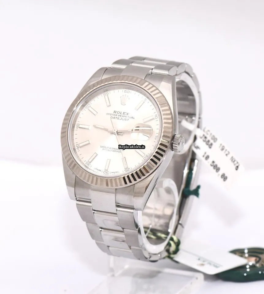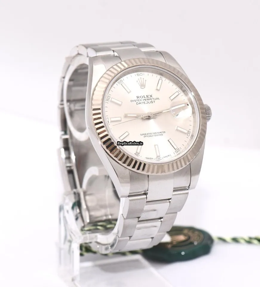 Tags: 10m atm, 126334, 31 jewels, 41mm case diameter, 70h power reserve, automatic movement, caliber 3135, caliber 3235, fold clasp, mens watches, no numerals, sapphire crystal, silver dial, steel bracelet color, steel bracelet material, steel case material, steel clasp material, unisex watches, white gold bezel material