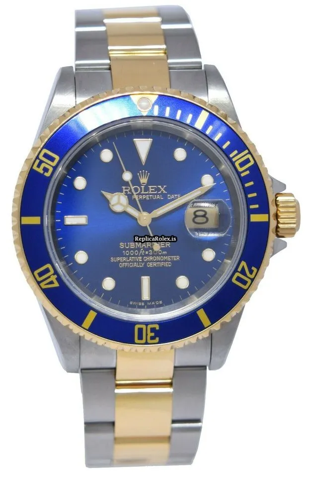 Tags: 16613, 40mm case diameter, automatic movement, blue dial, gold/steel bracelet color, gold/steel bracelet material, gold/steel case material, mens watches, unisex watches